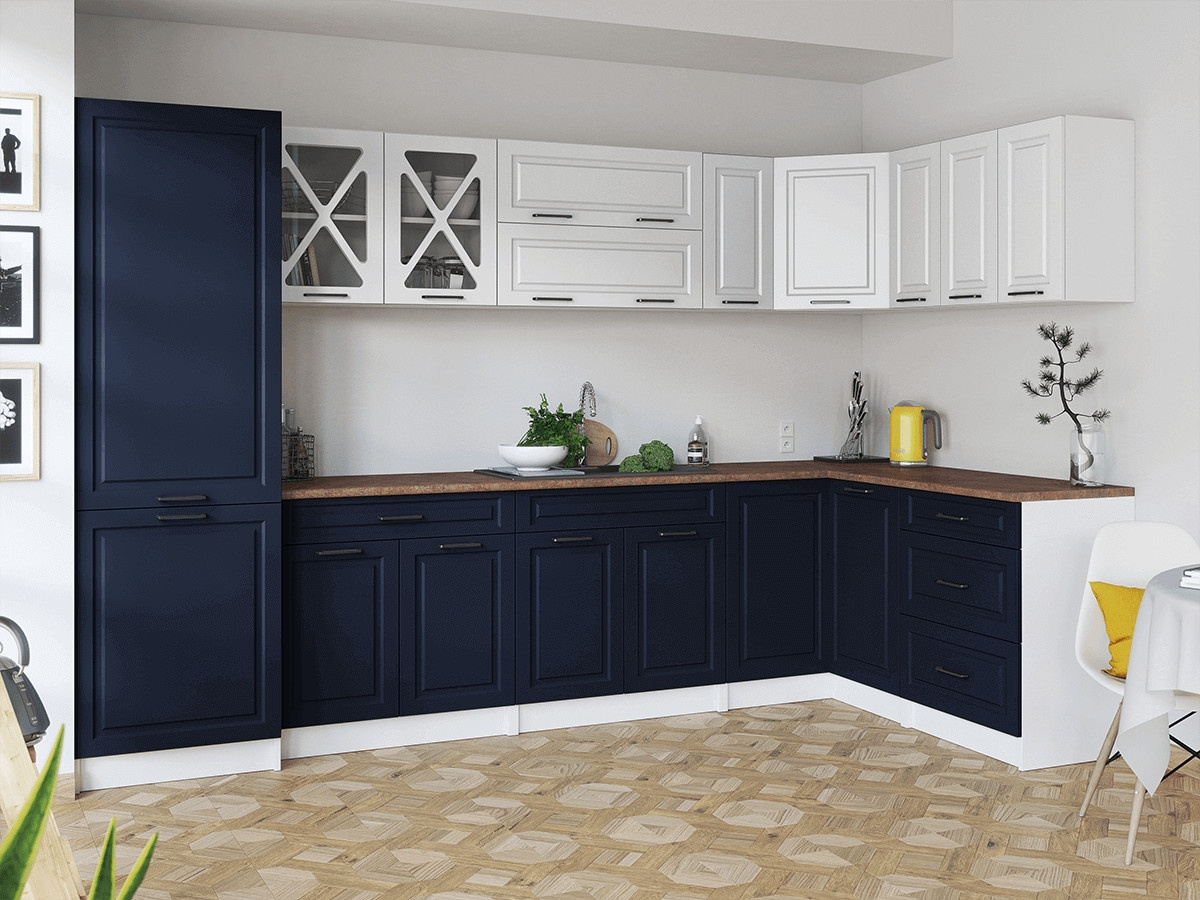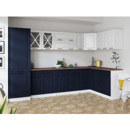 Rohová kuchyňská linka Simea bílá/tm.modrá MAT