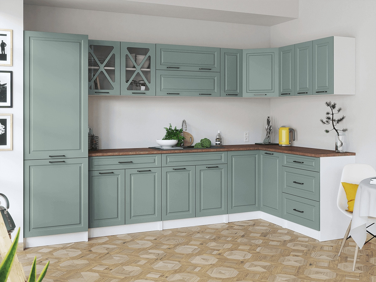 Rohová kuchyňská linka Simea světle zelená Fjord MAT