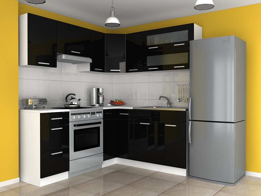 Rohová kuchyňská linka Tajsa černá LESK