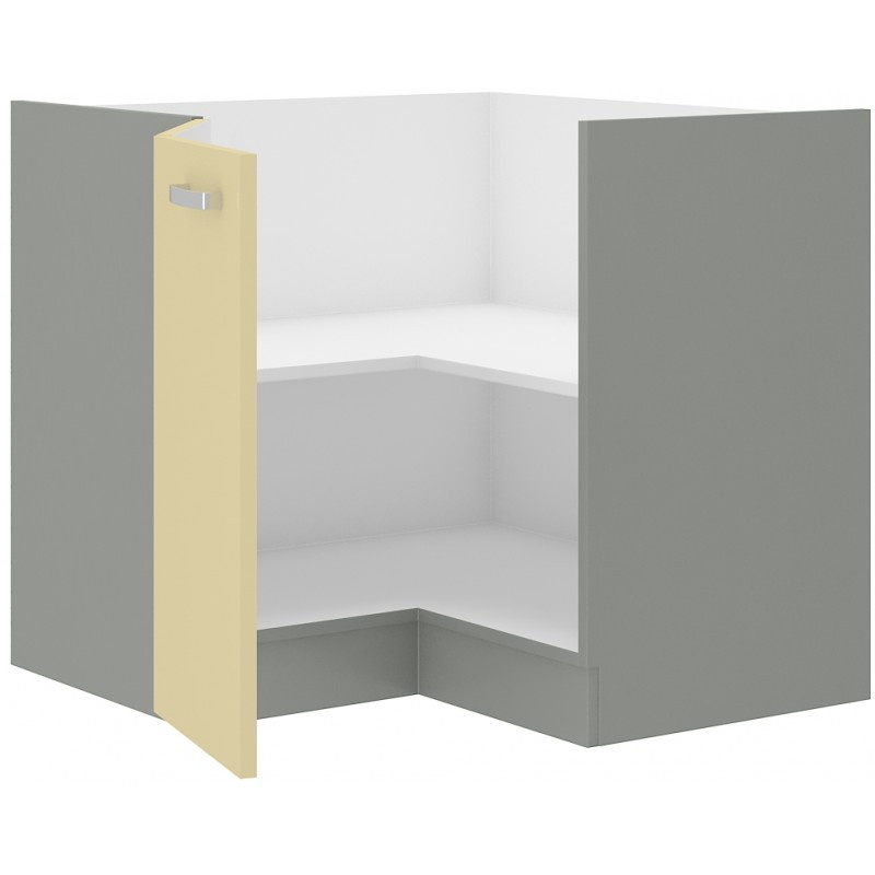 Rohová kuchyňská skříňka KARPO 89x89 DN 1F BB, Krémový lesk/Šedá