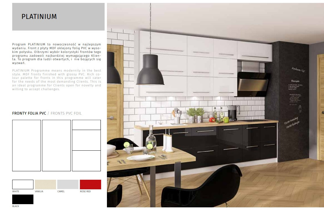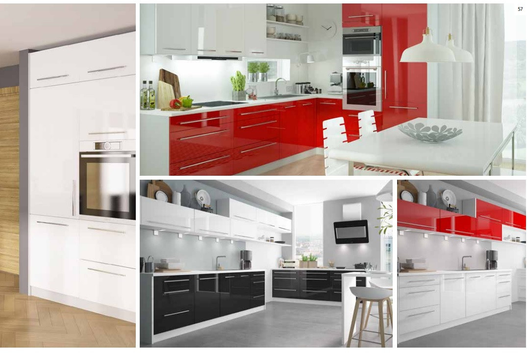 PLATINUM - moderní kuchyňská linka jednoduchého designu s vysokým leskem v délce 260 cm vhodná do malé kuchyně. Linka je dodávána bez celoplošného dřezu, který lze vybrat z naší nabídky.