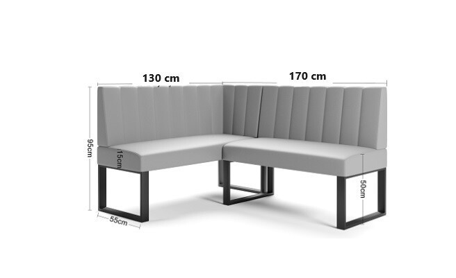 Kuchyňská rohová sedací souprava Madryt je jedinečný kus nábytku, který v sobě spojuje pohodlí, styl a nadčasovou eleganci. Měkké, pohodlné, čalouněné prvky se snoubí s krásnými kovovými nohami. Nohy jsou standardně v černé barvě. Rohová sedací souprava na míru je řešením vytvořeným pro ty, kteří se snaží najít nejen krásný, ale také dokonale přizpůsobený kus nábytku pro svůj interiér.