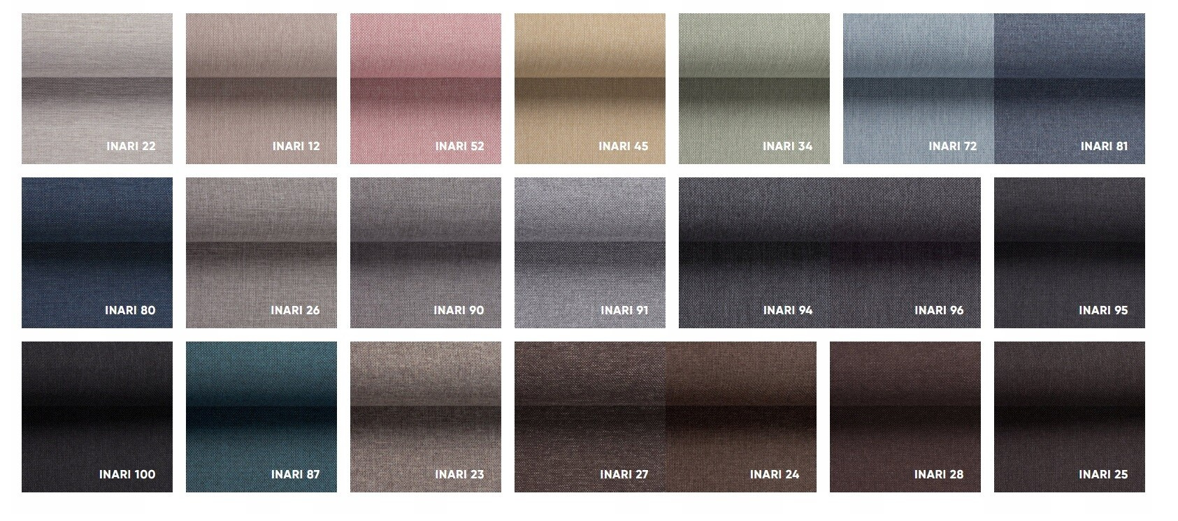 Tkanina INARI - strukturovaná nábytková tkanina, surová, mírně drsná na dotek, imitující přírodní len, středně silná. Čalounická tkanina s jednoduchým a pevným tkaním z ní činí ideální látku pro každodenní použití, velmi dobře se uplatní v jídelně. Je odolná proti oděru a vydrží mnoho let, což je pro tkané látky charakteristické. Má vysokou odolnost proti vyblednutí.