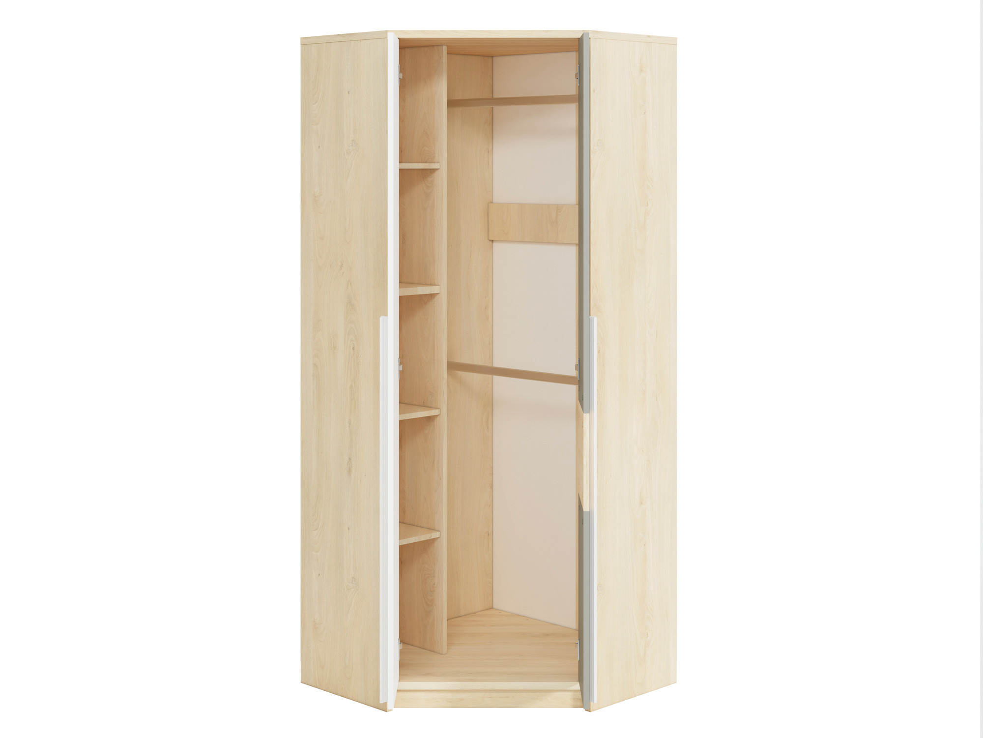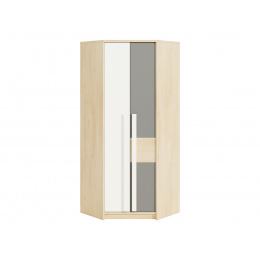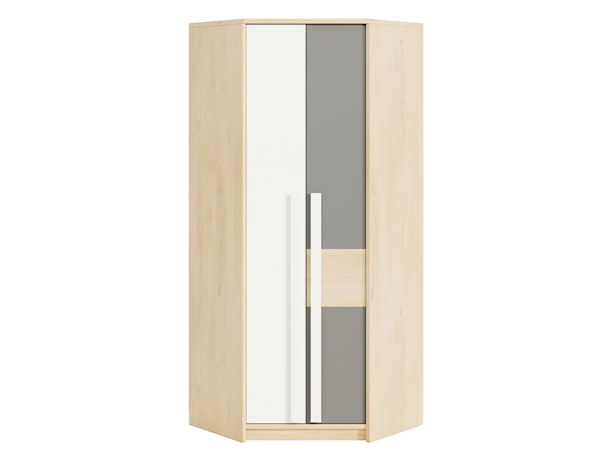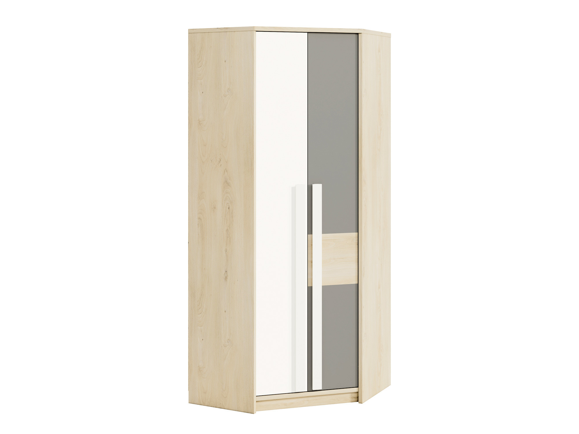 Rohová šatní skříň Drop 0101, Buk Fjord/Bílá/Šedá platina