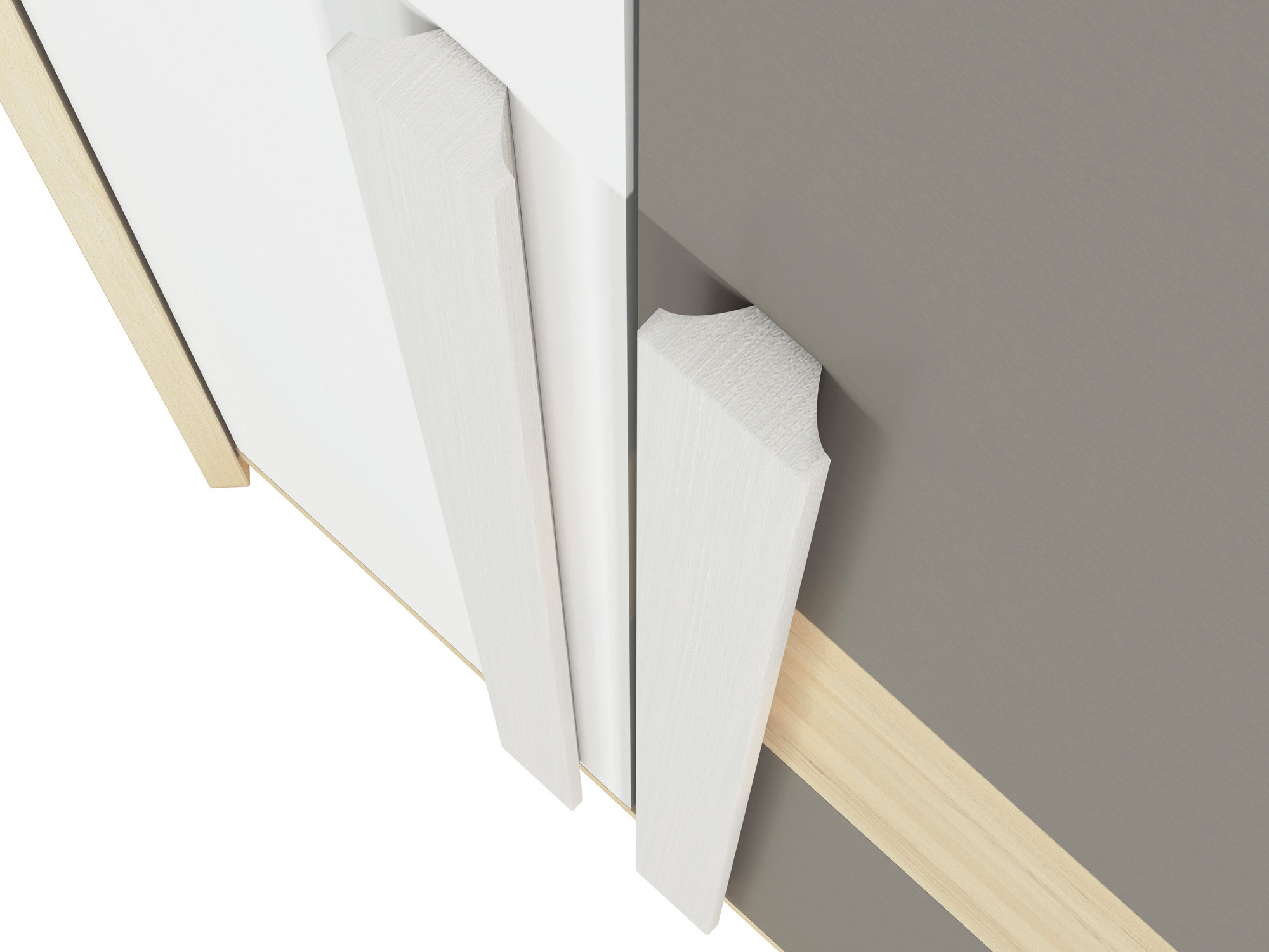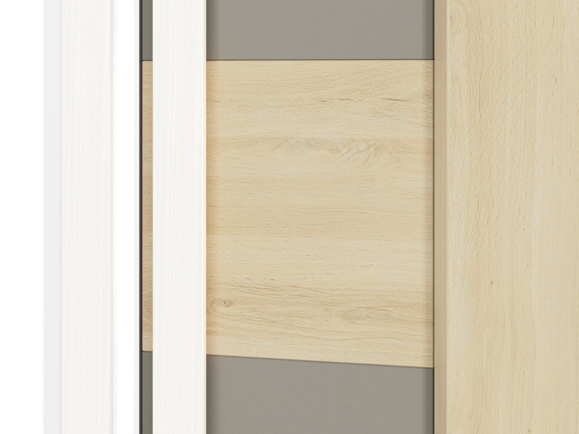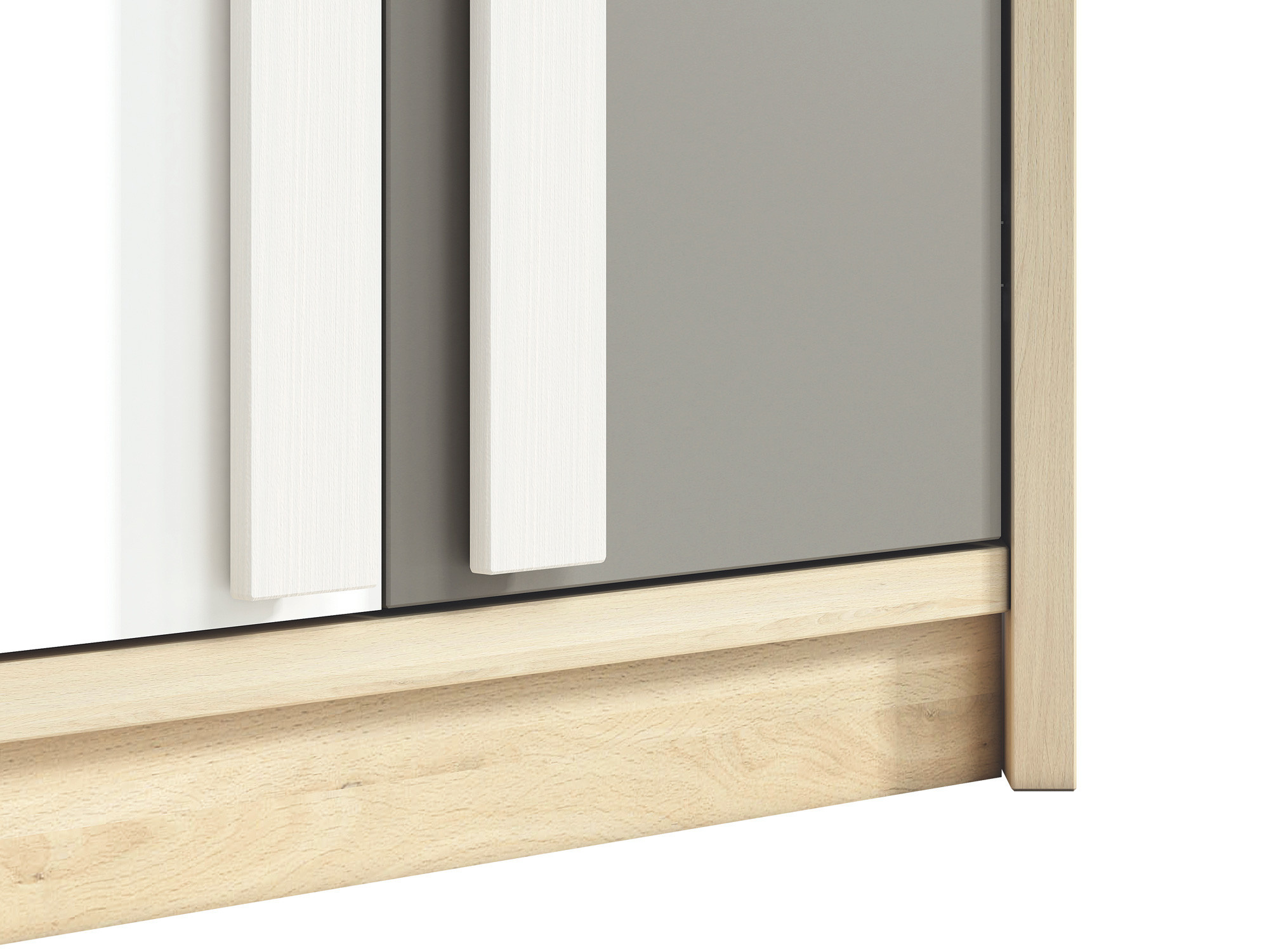 Rohová šatní skříň Drop 0101, Buk Fjord/Bílá/Šedá platina