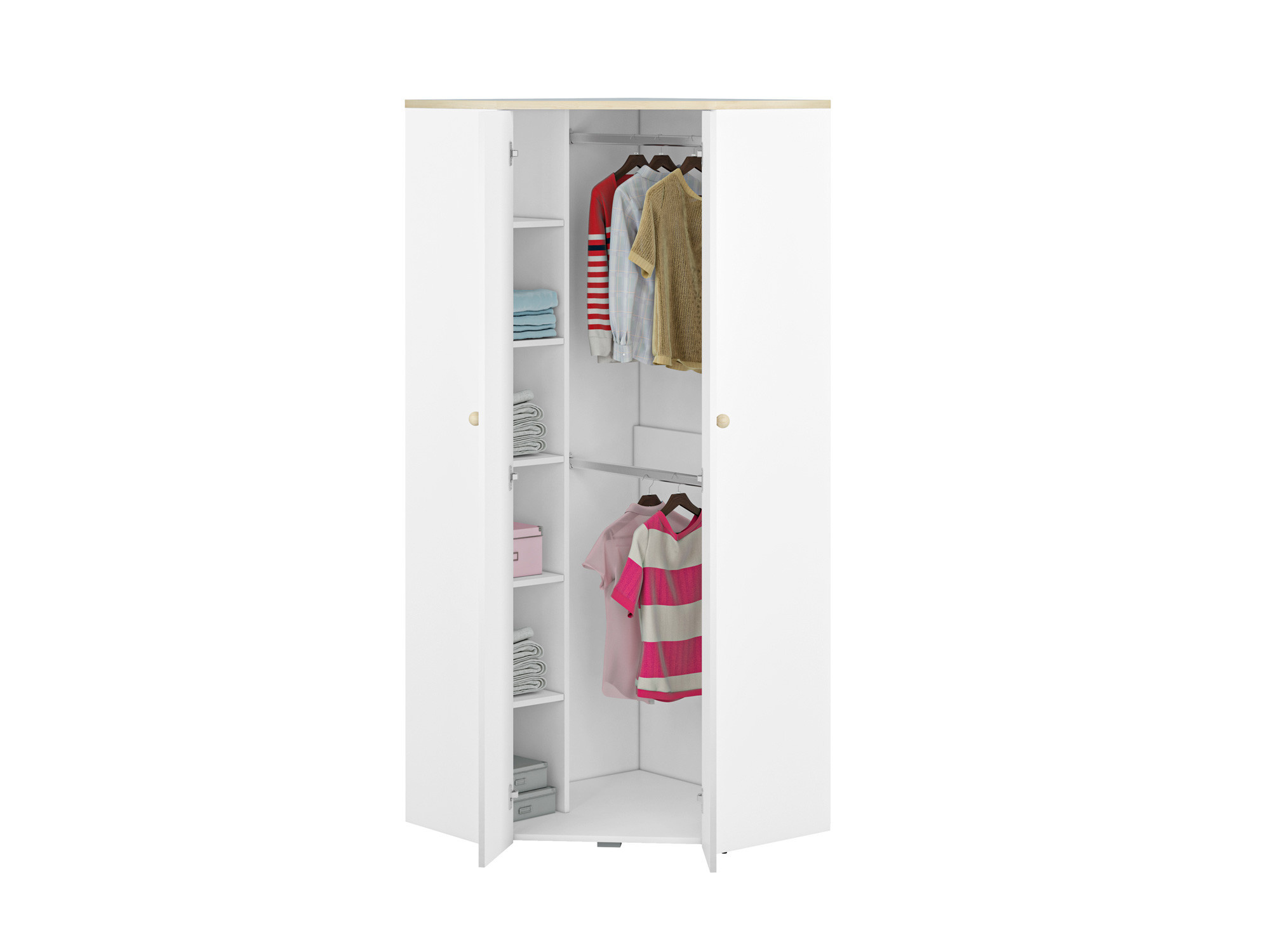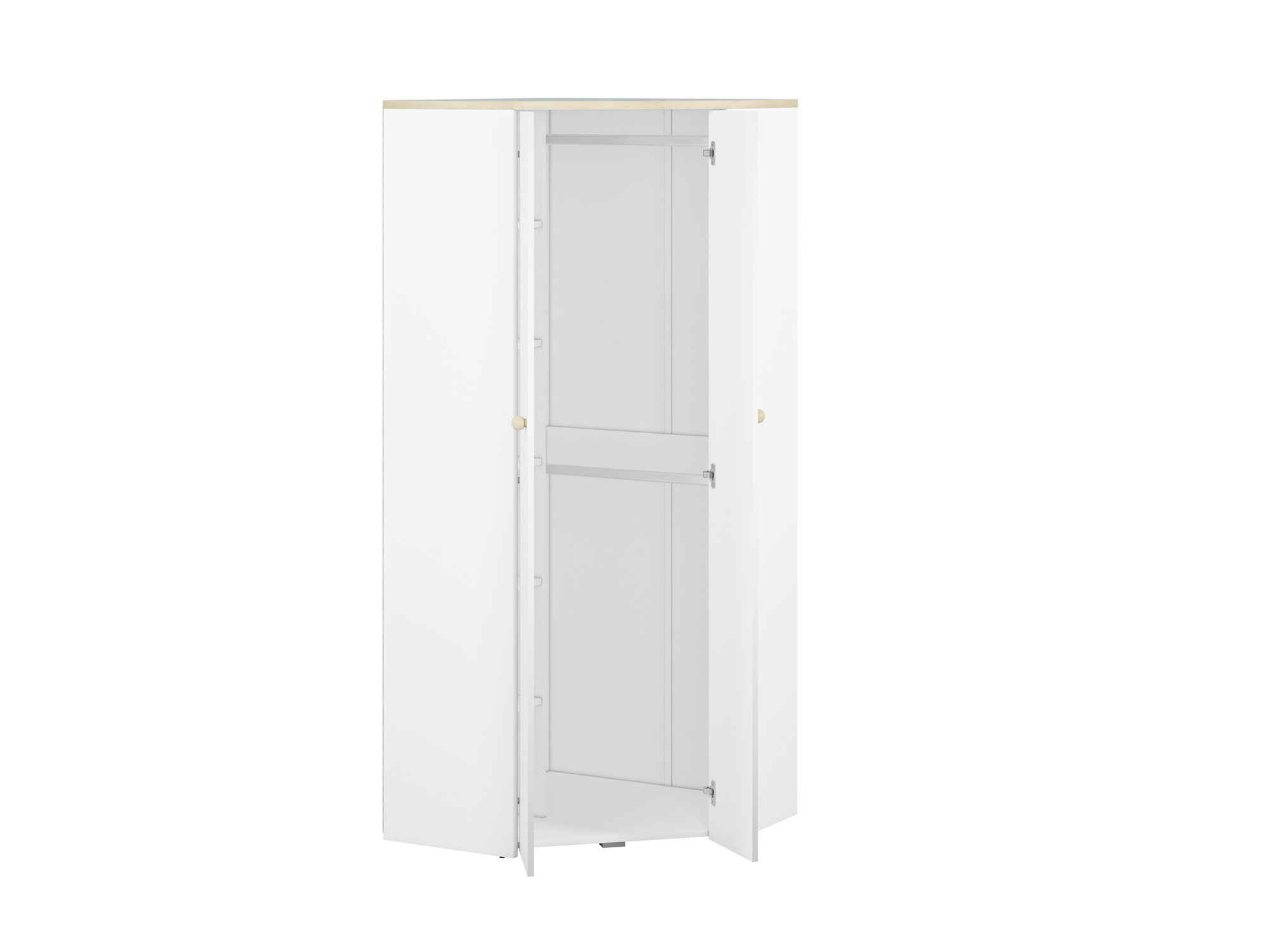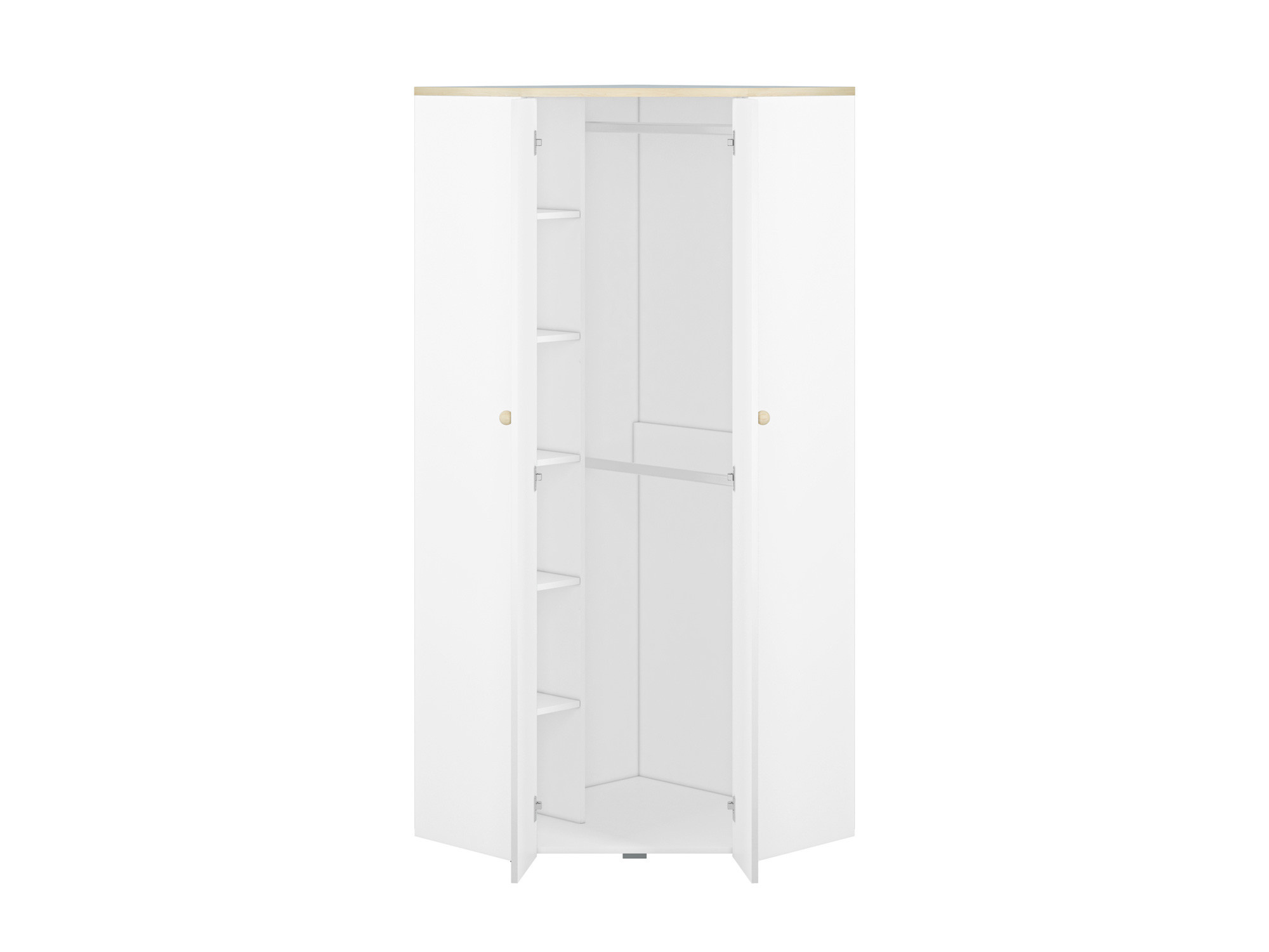 Rohová šatní skříň Elmo 03, Bílá Alpská/Buk Fiord