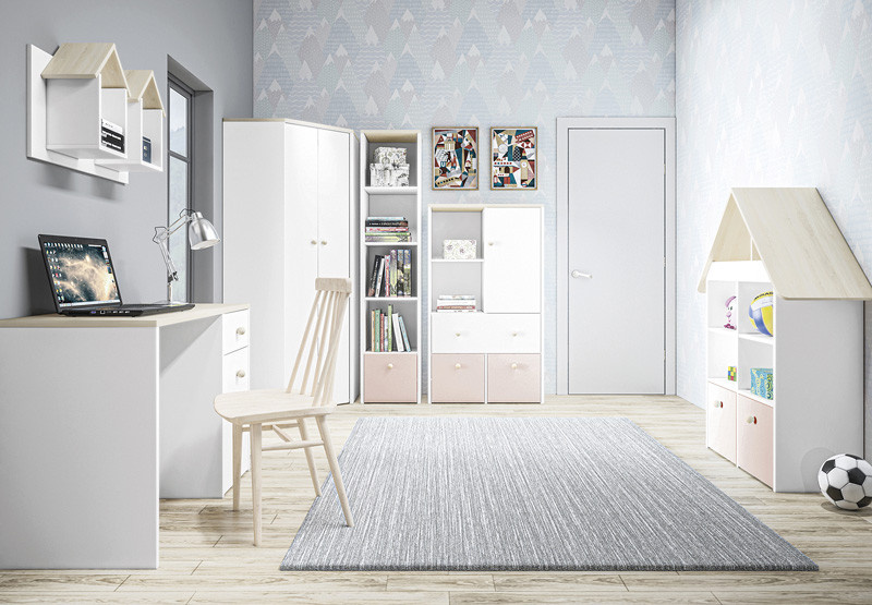 Rohová šatní skříň ELMO 03 je skvělým nábytkem do dětského pokoje nebo pokoje pro mládež. Mezi jeho nesporné výhody patří možnost umístění v rozích místnosti. Promyšlené uspořádání polic a umístění dvířek dokonale přispívá k ergonomii.