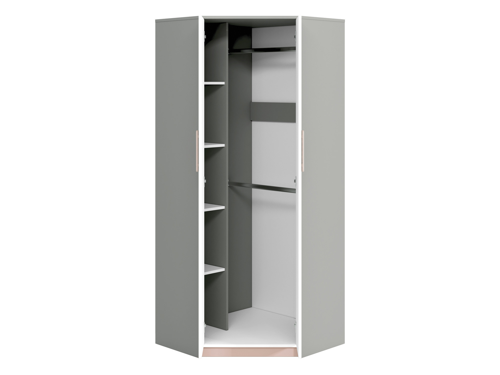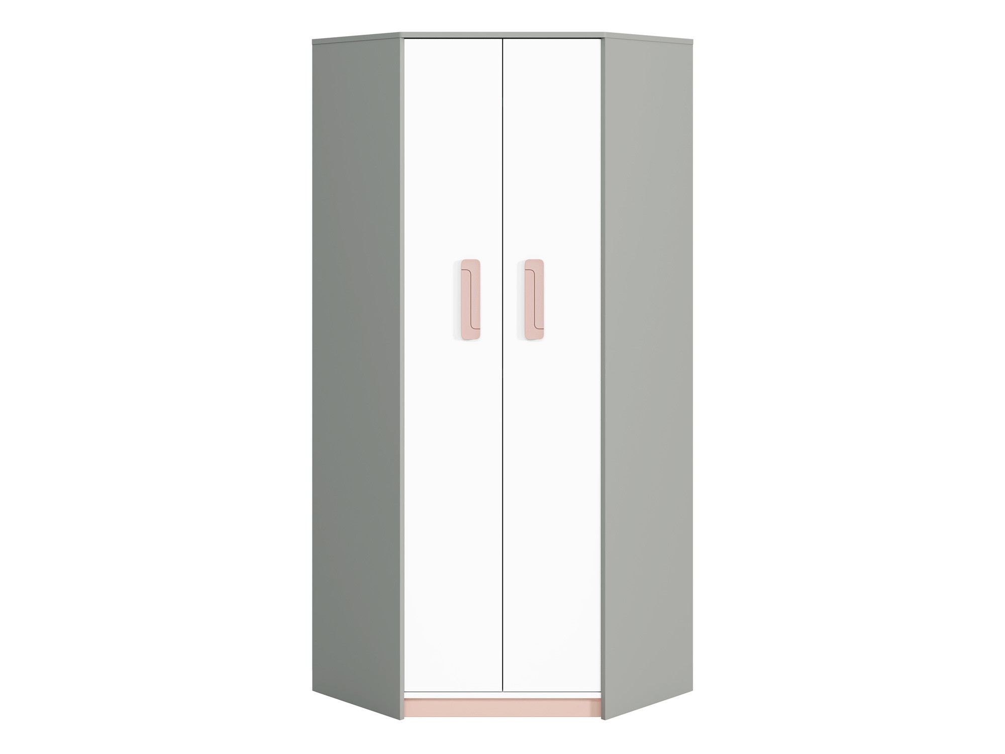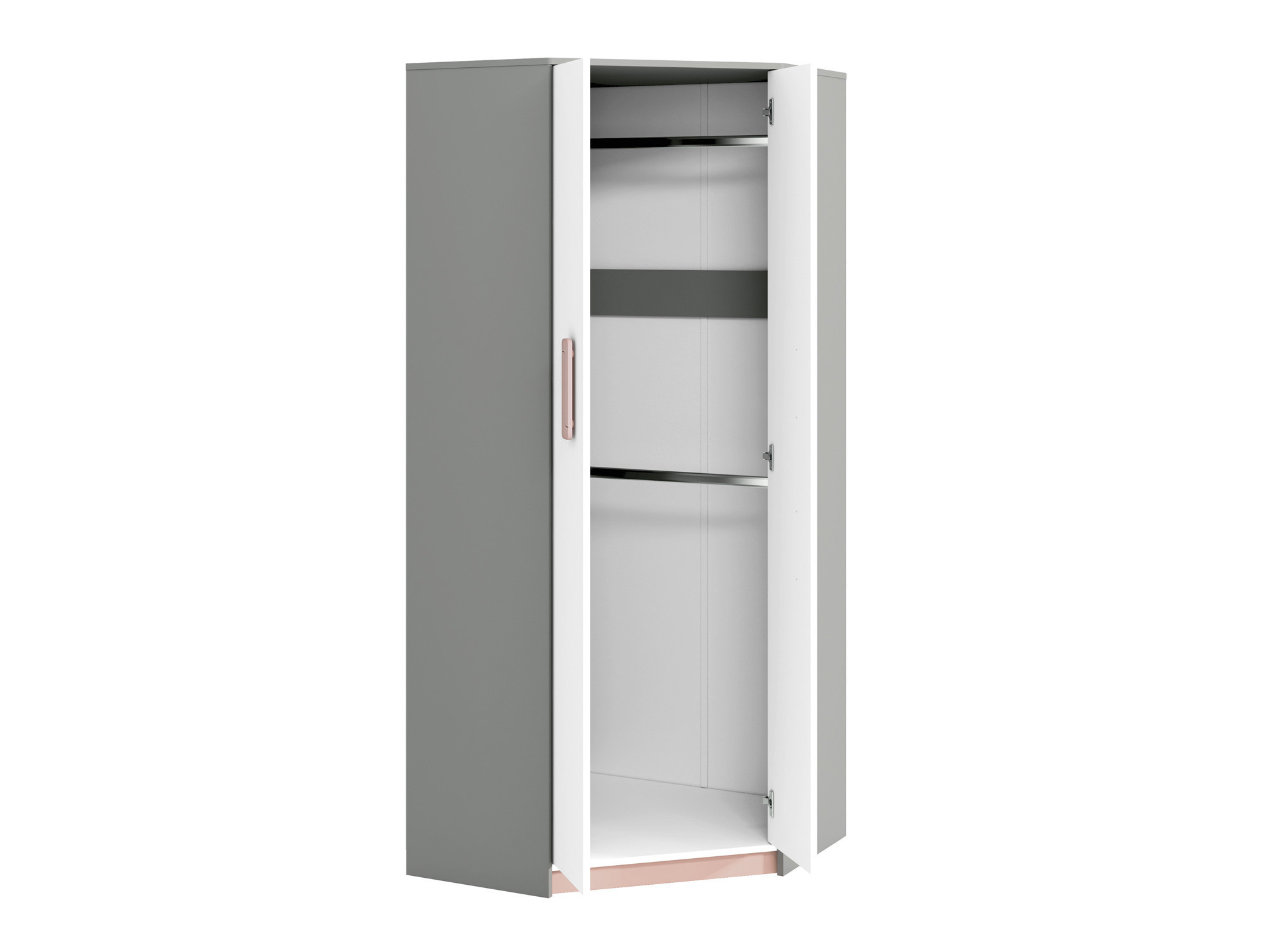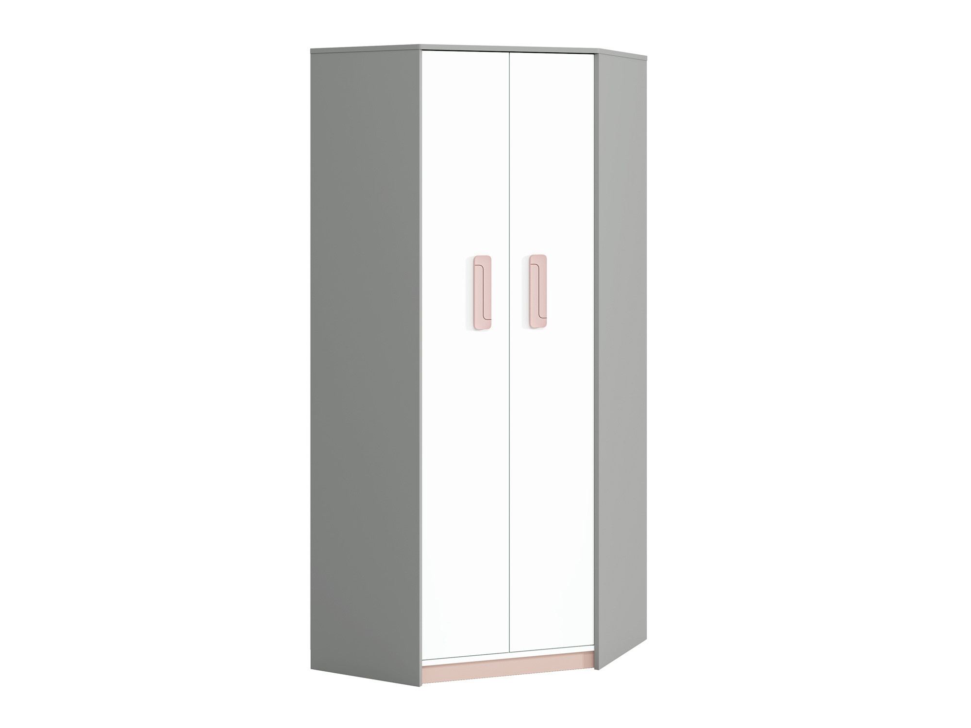 Dvoudveřová rohová šatní skříň IQ 01-01 v pudrové barvě byla navržena nejen pro nejmladší uživatele, ale také pro ty, kteří mají rádi barevné designové akcenty. Každá kolekce systémového nábytku, která je určena pro omezený prostor a má jej krásně uspořádat v libovolné konfiguraci, se neobejde bez modelu rohové šatní skříně. Mezi jeho nesporné výhody patří možnost umístění v rozích místnosti.