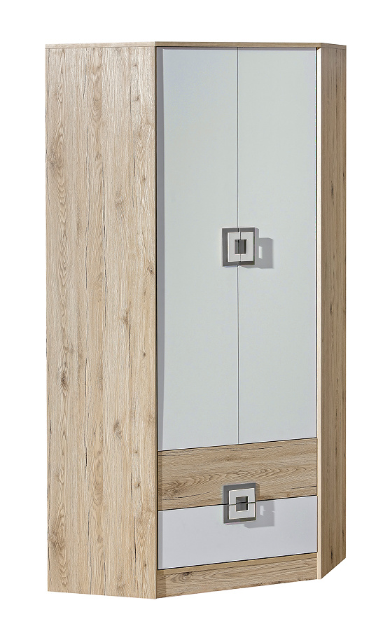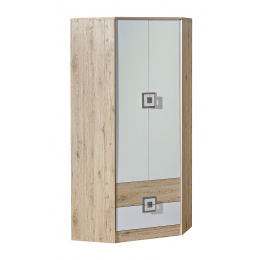 Rohová šatní skříň NICO 02, Světlý Dub/Bílá/Šedá