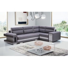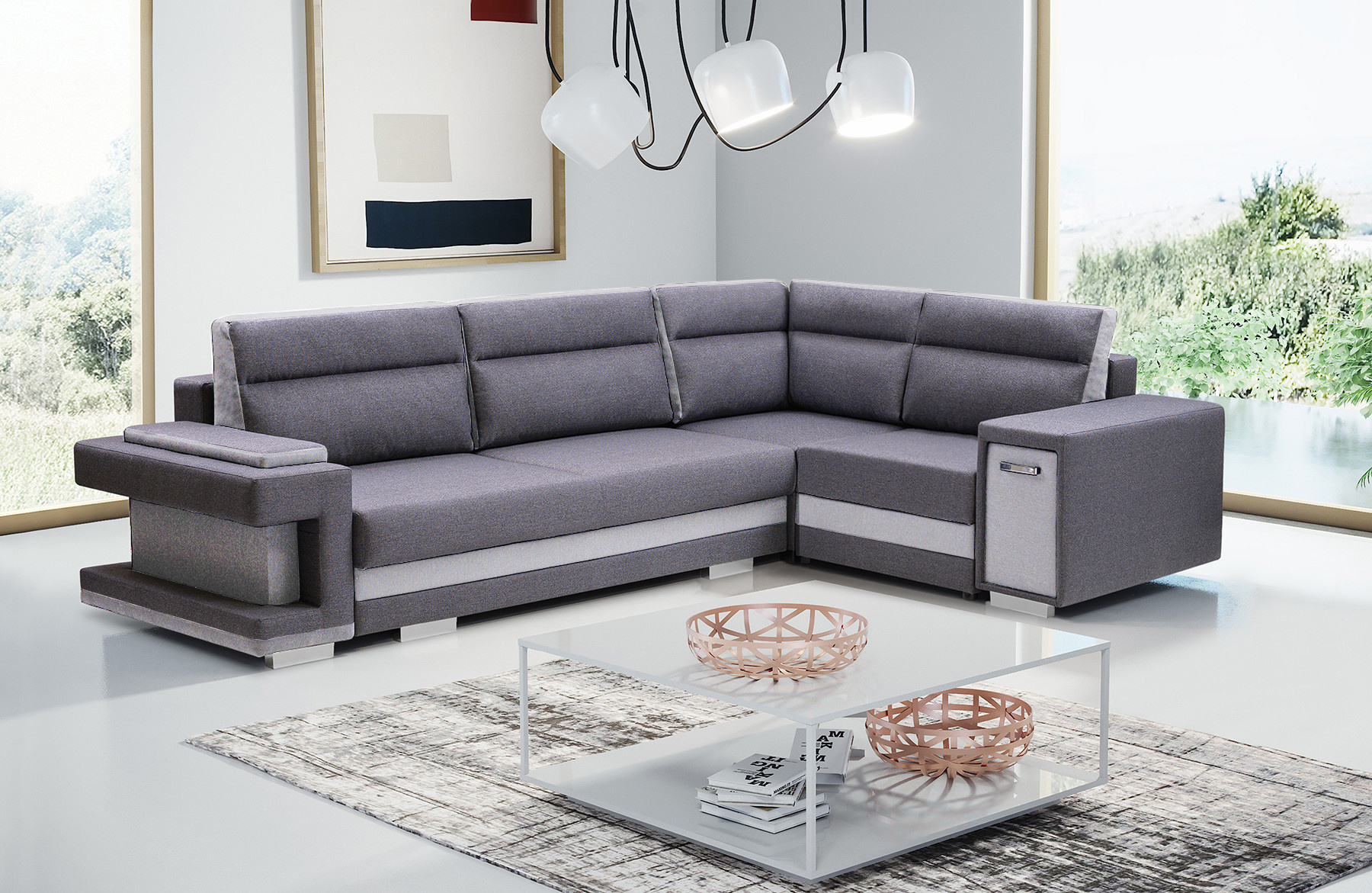 je rohová sedací souprava, která se bude skvěle vyjímat ve volném prostoru obývacího pokoje zařízeného v moderní estetice. Elegantní rohová sedací souprava s vestavěnými dvěma praktickými úložnými prostory a kontejnerem na lůžkoviny je volně stojící kus nábytku, takže ji lze umístit jak ke stěně, tak do centrální části místnosti. Rohová pohovka pro více osob je umístěna na dřevěném rámu. Moderní design doplňují chromované nohy, které nejen působivě vypadají, ale také zaručují odpovídající odolnost a stabilitu nábytku.