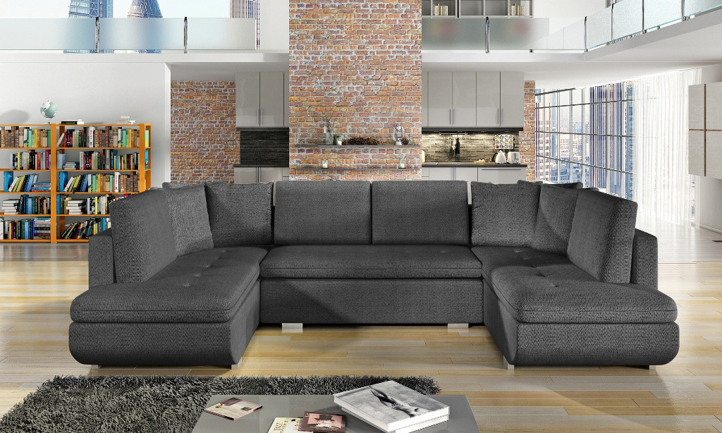 Rohová sedací souprava ARGENT U je univerzální rohová sedací souprava, kterou lze díky čalouněnému opěradlu umístit jak ke stěně obývacího pokoje, tak do jeho střední části. Moderní rohová pohovka ve tvaru U je rozkládací kus nábytku, který lze rychle přeměnit z obývacího na spací. Rohová sedačka pro více osob je vybavena automatickou rozkládací pomůckou, takže ji zvládnou starší lidé i děti. Dřevěný rám je doplněn vlnitými pružinami na spací ploše, sedáku a opěráku a čalounickou pěnou T-30. Model ARGENT U stojí na stylových chromovaných nohách, které dotvářejí celé uspořádání. Moderní rohová pohovka je čalouněná kvalitní látkou, která je k dispozici v široké škále barev. Čalouněná rohová sedací souprava s polštáři je vybavena prostorným kontejnerem na lůžkoviny, do kterého se snadno vejdou polštáře, přikrývky a peřiny, tedy všechny prvky potřebné k přípravě lůžka na spaní. Moderní rohová pohovka ARGENT do U s bočnicemi zaujme dekorativním prošíváním umístěným na sedáku a kontrastní barevnou vložkou.