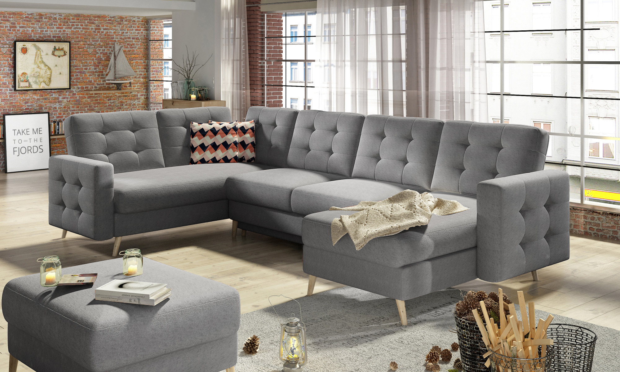 Rohová sedací souprava Asgard U je vyrobena z kvalitních materiálů. Konstrukce sedací soupravy je vyrobena z kombinace dřeva a dřevotřísky. Sedací část je vyrobena v kombinaci polyuretanové pěny T3030, polyuretanové pěny T2140 a bonelů Faliste. Sedací souprava je rozkládací pomocí automatu DL. Sedací souprava má prostorný úložný prostor pro úschovu lůžkovin.