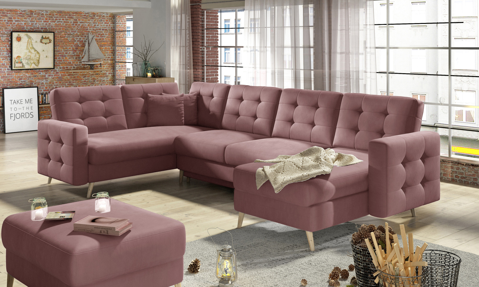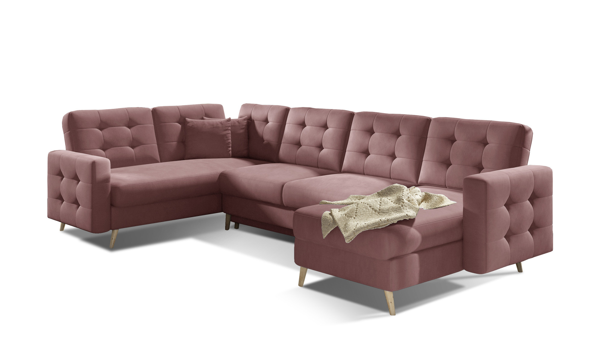 Sedací souprava ve tvaru U ASGARD je skvělou volbou pro ty, kteří hledají kombinaci moderního designu, komfortu a praktičnosti. Její prostorný a pohodlný design z ní činí ideální volbu pro rodinné domy i prostorné byty. Ať už ji umístíte do obývacího pokoje, herny nebo jiného prostoru, jistě se stane oblíbeným místem pro relaxaci a zábavu.