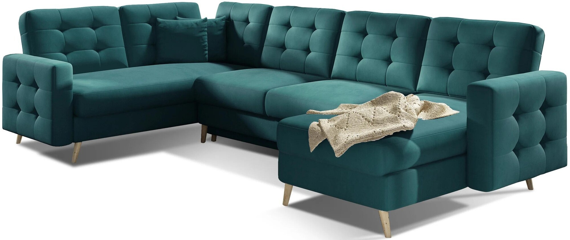Sedací souprava ve tvaru U ASGARD je skvělou volbou pro ty, kteří hledají kombinaci moderního designu, komfortu a praktičnosti. Její prostorný a pohodlný design z ní činí ideální volbu pro rodinné domy i prostorné byty. Ať už ji umístíte do obývacího pokoje, herny nebo jiného prostoru, jistě se stane oblíbeným místem pro relaxaci a zábavu.