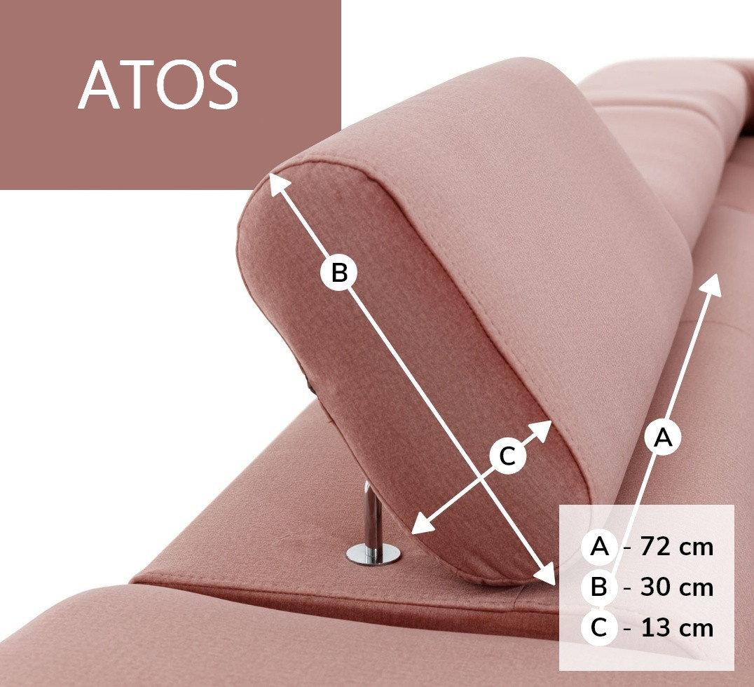 Rohová sedací souprava ATOS je vyrobena z kvalitních materiálů. Konstrukce sedací soupravy je vyrobena z kombinace dřeva a dřevotřísky. Sedací část je vyrobena v kombinaci polyuretanové pěny T3040+T2542 a vlnitých pružin. Na opěru sedací soupravy je použita polyuretanová pěna T2542/T3040. Sedací souprava je rozkládací pomocí rozkladu typu Delfín. Sedací souprava má prostorný úložný prostor pro úschovu lůžkovin.