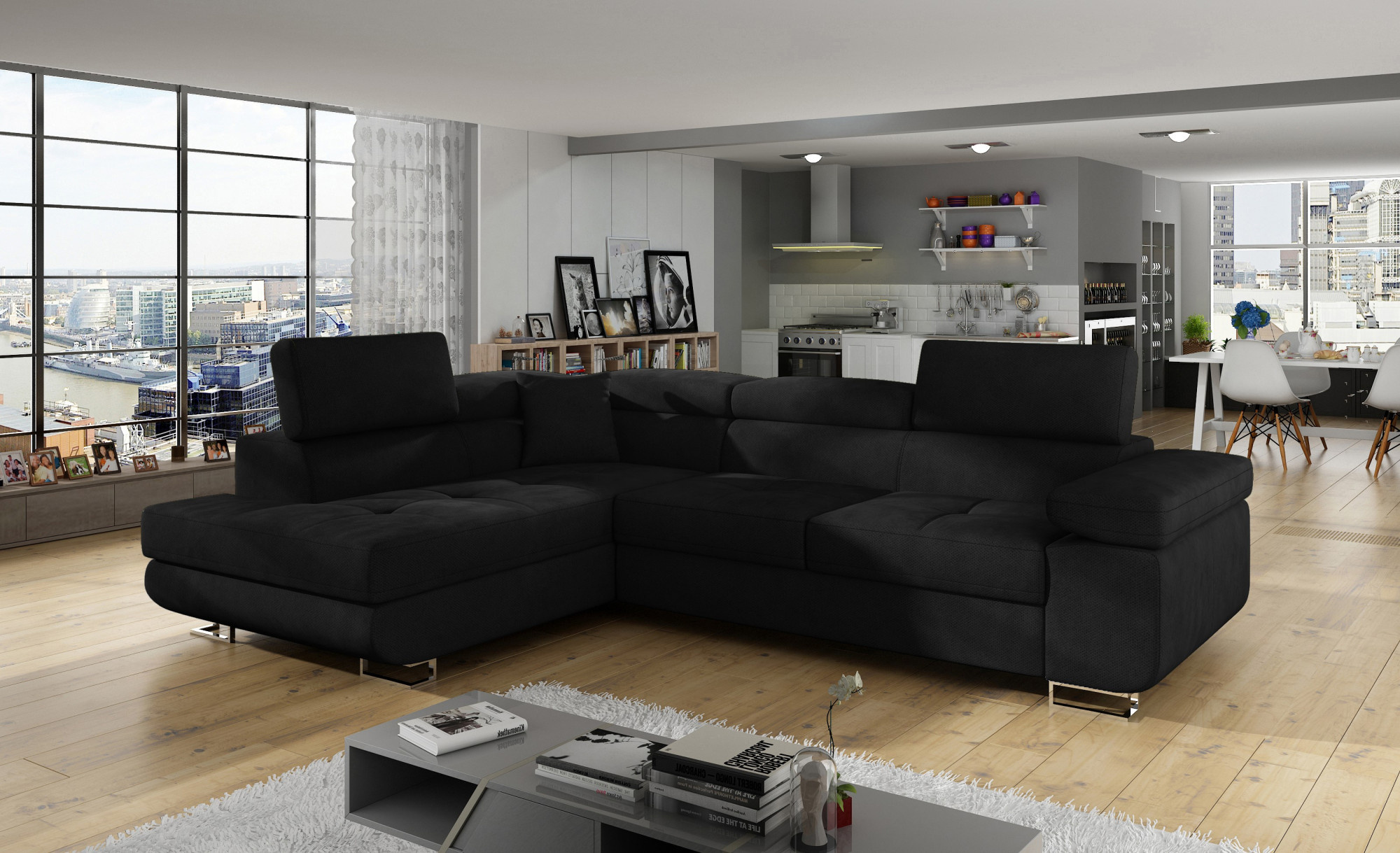 - možnost ustavení sedací soupravy do prostoru - záda sedací soupravy jsou očalouněny stejnou potahovou látkou