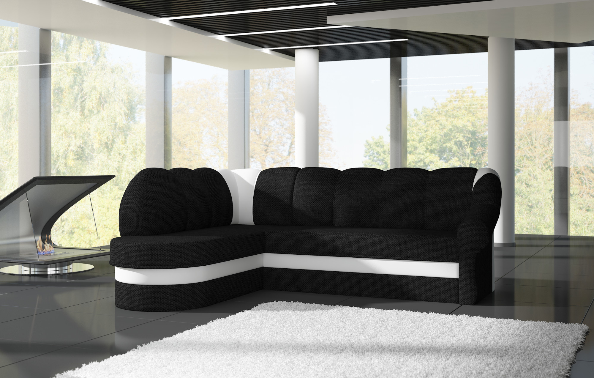 - v základní variantě jsou záda sedací soupravy očalouněny do černé látky (nemožnost ustavení do prostoru)