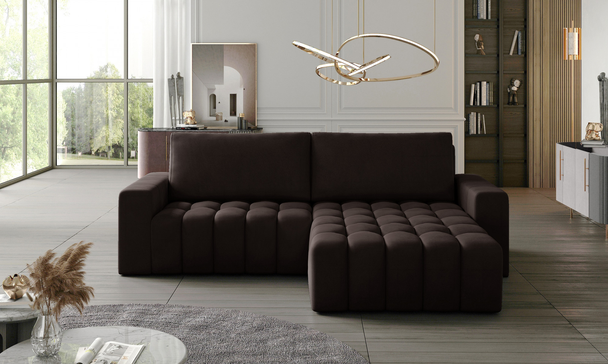 - možnost ustavení sedací soupravy do prostoru - záda sedací soupravy jsou očalouněny stejnou potahovou látkou