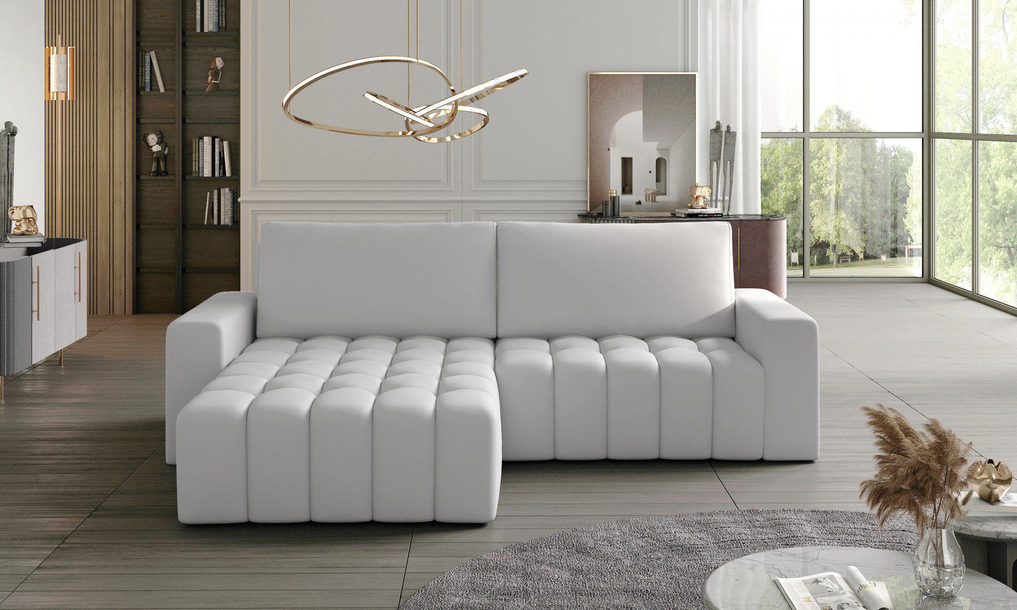 - možnost ustavení sedací soupravy do prostoru - záda sedací soupravy jsou očalouněny stejnou potahovou látkou