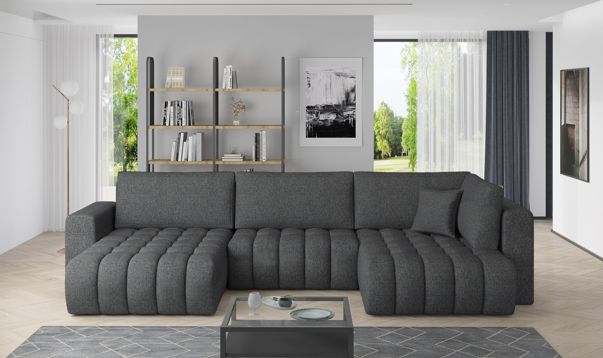 - možnost ustavení sedací soupravy do prostoru - záda sedací soupravy jsou očalouněny stejnou potahovou látkou