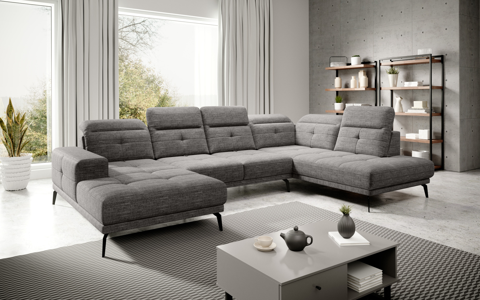 - možnost ustavení sedací soupravy do prostoru - záda sedací soupravy jsou očalouněny stejnou potahovou látkou