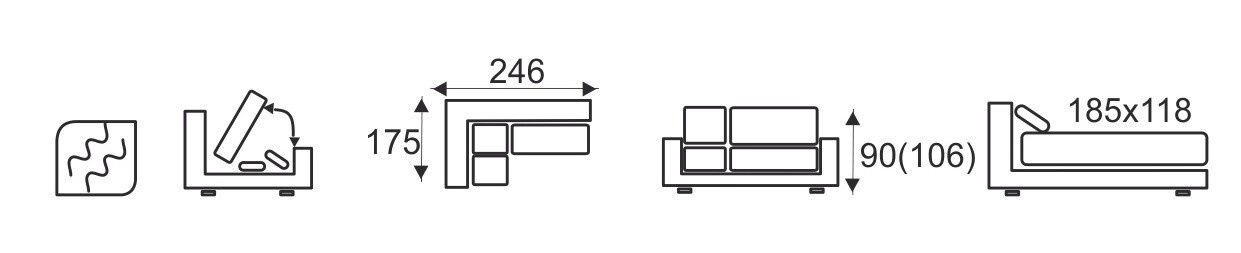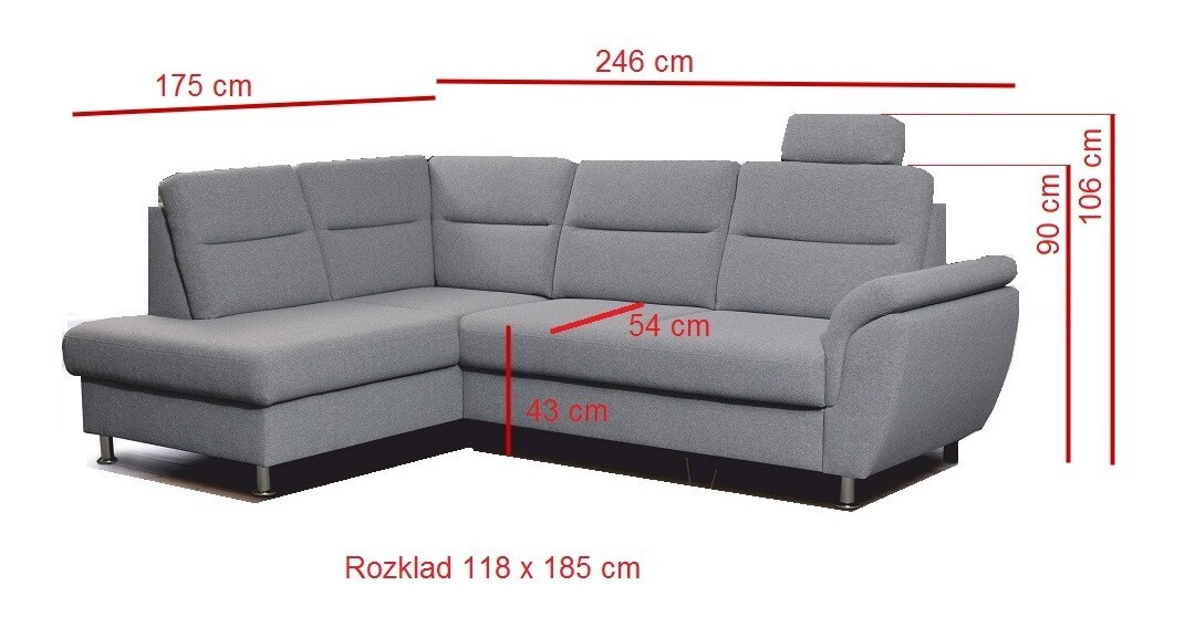 Rozměry: 246 x 175, v. 90-106 cm (rozměr spací plochy: 185 x 118 cm)