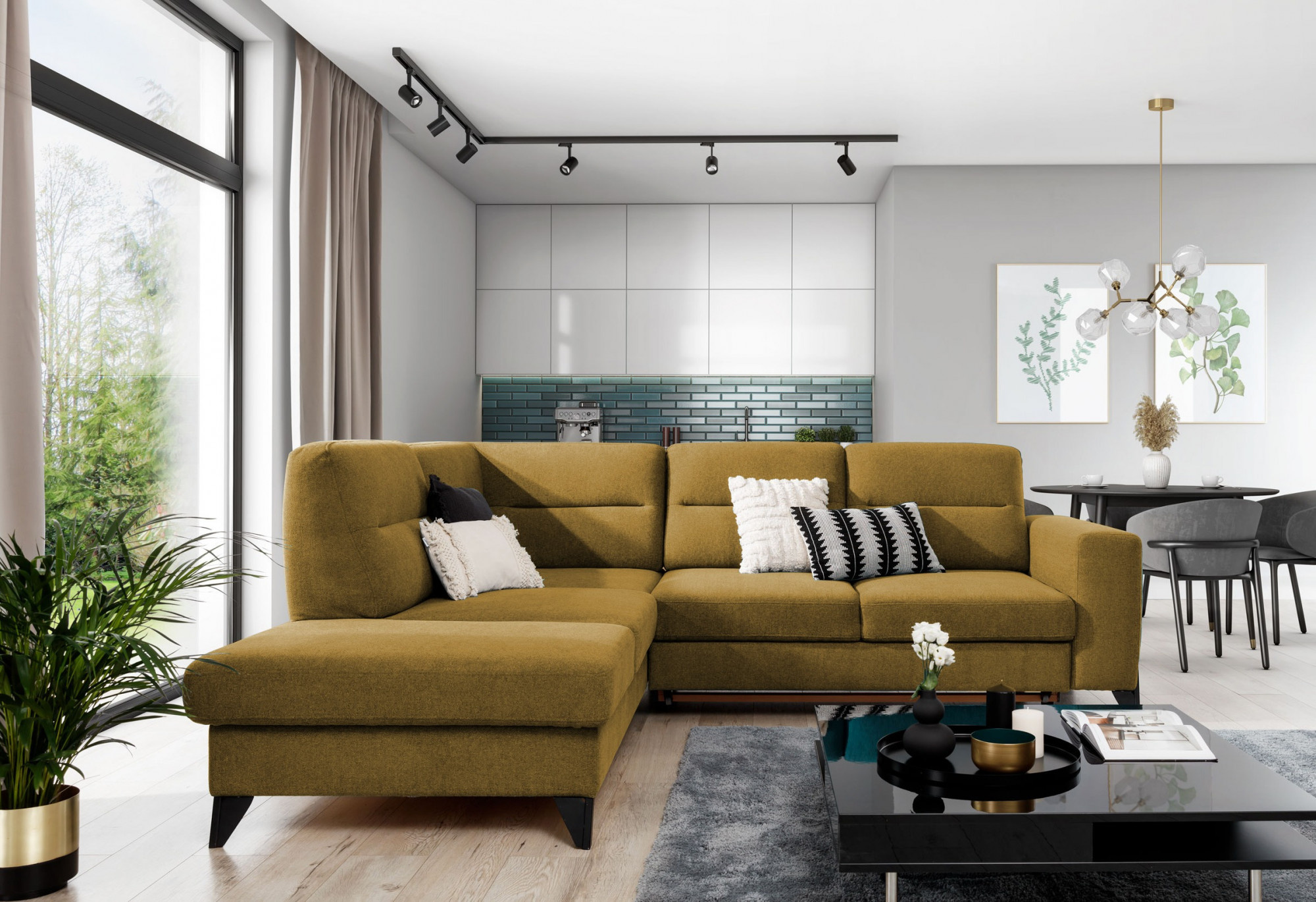 - možnost ustavení sedací soupravy do prostoru - záda sedací soupravy jsou očalouněny stejnou potahovou látkou
