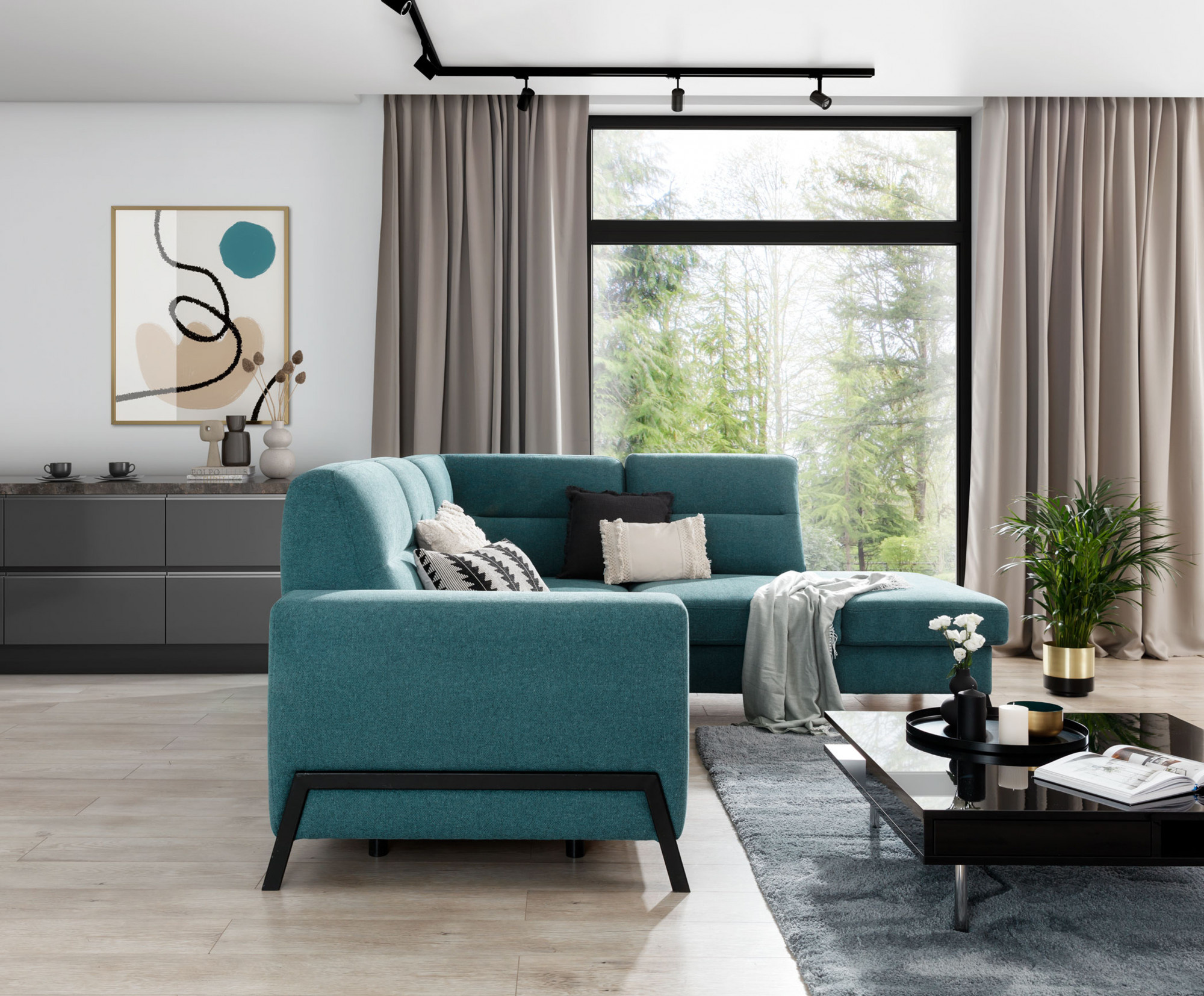 - možnost ustavení sedací soupravy do prostoru - záda sedací soupravy jsou očalouněny stejnou potahovou látkou