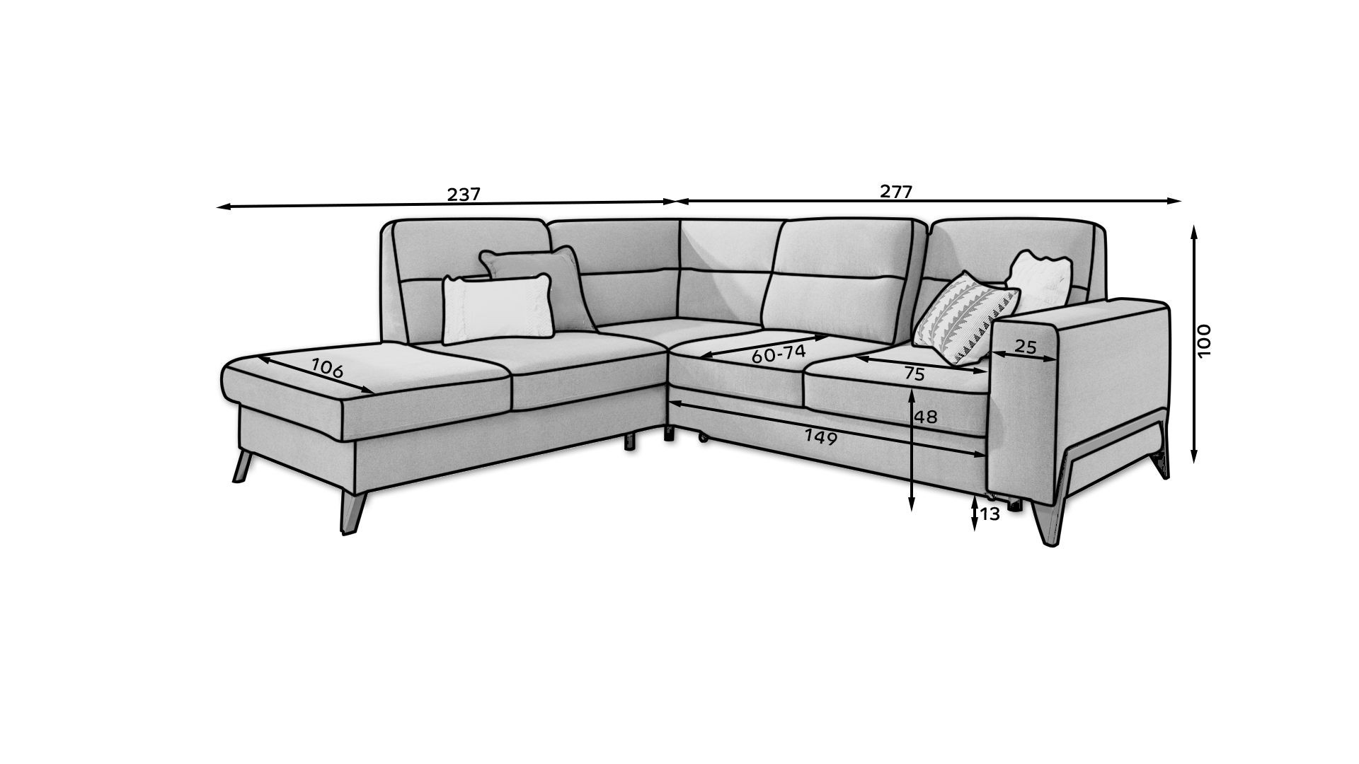 Rohová sedací souprava Cassara je vyrobena z kvalitních materiálů. Konstrukce sedací soupravy je vyrobena z kombinace dřeva. Sedací část je vyrobena v kombinaci polyuretanové pěny T2315 + HR 3035 paměťové pěny a vlnitých pružin typu B. Sedací souprava je rozkládací pomocí rozkládacího mechanismu Delfín.