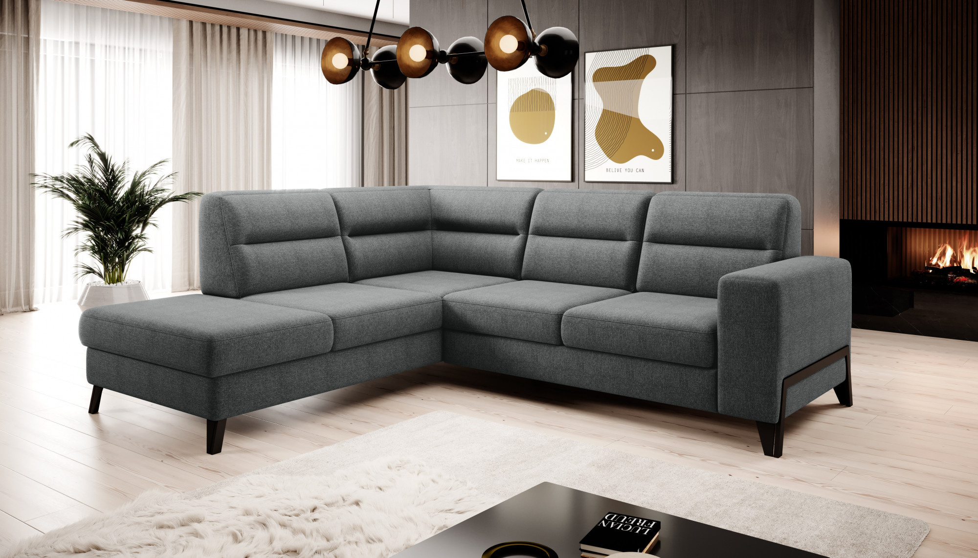 - možnost ustavení sedací soupravy do prostoru - záda sedací soupravy jsou očalouněny stejnou potahovou látkou