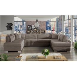 Stylová rohová pohovka DARCO do U je rozkládací pohovka, která se skvěle hodí do velkých obývacích pokojů - díky čalouněnému opěradlu ji lze umístit do jejich střední části. Dřevěný rám, který zajišťuje odolnost a stabilitu nábytku, je čalouněný látkou, jejíž povrchovou úpravu si můžete vybrat z barev dostupných ve vzorníku. Sedák je spolu s mírně profilovaným opěradlem vyplněn vlnitou pružinou a čalounickou pěnou T-30, která díky své zvýšené pružnosti zabrání vzniku nevzhledných promáčklin na nábytku. Všestranná rohová pohovka ve tvaru U je víceúčelový kus nábytku, který se vyznačuje moderním provedením zvýrazněným chromovanými nožkami a dekorativními polštáři, které jsou k dispozici jako součást soupravy. Volně stojící nábytek DARCO U je vybaven dvěma úložnými prostory a má také funkci spaní, díky níž lze nábytek bez bočnic rozložit. Model DARCO U se vyrábí také na individuální objednávku, takže je možné zvolit barvu rohových vložek.