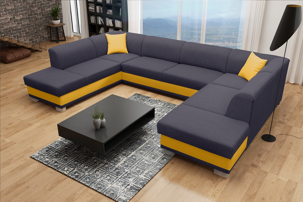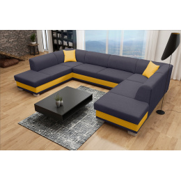 Stylová rohová pohovka DARCO do U je rozkládací pohovka, která se skvěle hodí do velkých obývacích pokojů - díky čalouněnému opěradlu ji lze umístit do jejich střední části. Dřevěný rám, který zajišťuje odolnost a stabilitu nábytku, je čalouněný látkou, jejíž povrchovou úpravu si můžete vybrat z barev dostupných ve vzorníku. Sedák je spolu s mírně profilovaným opěradlem vyplněn vlnitou pružinou a čalounickou pěnou T-30, která díky své zvýšené pružnosti zabrání vzniku nevzhledných promáčklin na nábytku. Všestranná rohová pohovka ve tvaru U je víceúčelový kus nábytku, který se vyznačuje moderním provedením zvýrazněným chromovanými nožkami a dekorativními polštáři, které jsou k dispozici jako součást soupravy. Volně stojící nábytek DARCO U je vybaven dvěma úložnými prostory a má také funkci spaní, díky níž lze nábytek bez bočnic rozložit. Model DARCO U se vyrábí také na individuální objednávku, takže je možné zvolit barvu rohových vložek.