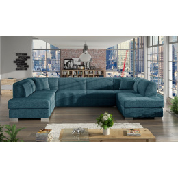Stylová rohová pohovka DARCO do U je rozkládací pohovka, která se skvěle hodí do velkých obývacích pokojů - díky čalouněnému opěradlu ji lze umístit do jejich střední části. Dřevěný rám, který zajišťuje odolnost a stabilitu nábytku, je čalouněný látkou, jejíž povrchovou úpravu si můžete vybrat z barev dostupných ve vzorníku. Sedák je spolu s mírně profilovaným opěradlem vyplněn vlnitou pružinou a čalounickou pěnou T-30, která díky své zvýšené pružnosti zabrání vzniku nevzhledných promáčklin na nábytku. Všestranná rohová pohovka ve tvaru U je víceúčelový kus nábytku, který se vyznačuje moderním provedením zvýrazněným chromovanými nožkami a dekorativními polštáři, které jsou k dispozici jako součást soupravy. Volně stojící nábytek DARCO U je vybaven dvěma úložnými prostory a má také funkci spaní, díky níž lze nábytek bez bočnic rozložit. Model DARCO U se vyrábí také na individuální objednávku, takže je možné zvolit barvu rohových vložek.