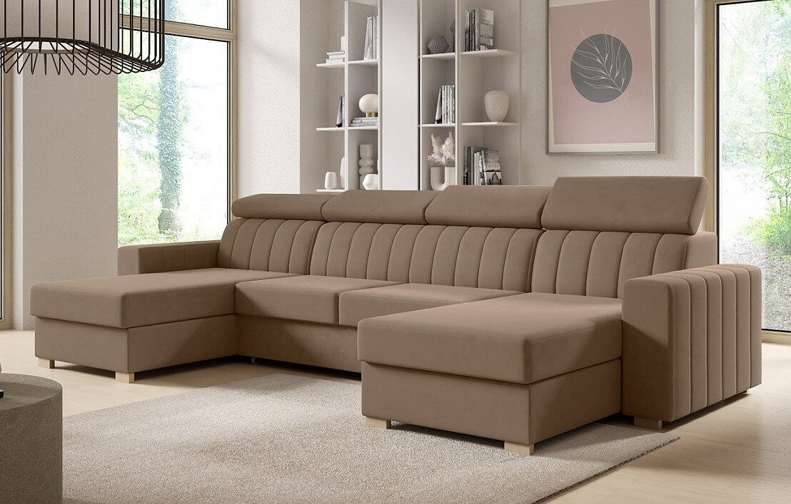 Jednou z hlavních předností této sedací soupravy je její rozkládací funkce. Snadno ji přeměníte na pohodlné lůžko s plochou na spaní 283x124 cm, což je ideální pro hosty nebo pro příležitostné přespání. Navíc je vybavena úložným prostorem, který je perfektní pro uschování lůžkovin, polštářů nebo jiných předmětů, které chcete mít po ruce, ale zároveň je mít úhledně uklizené.