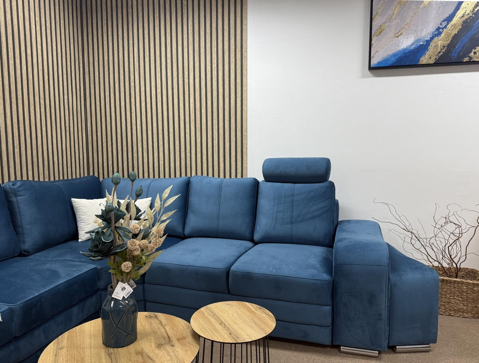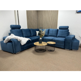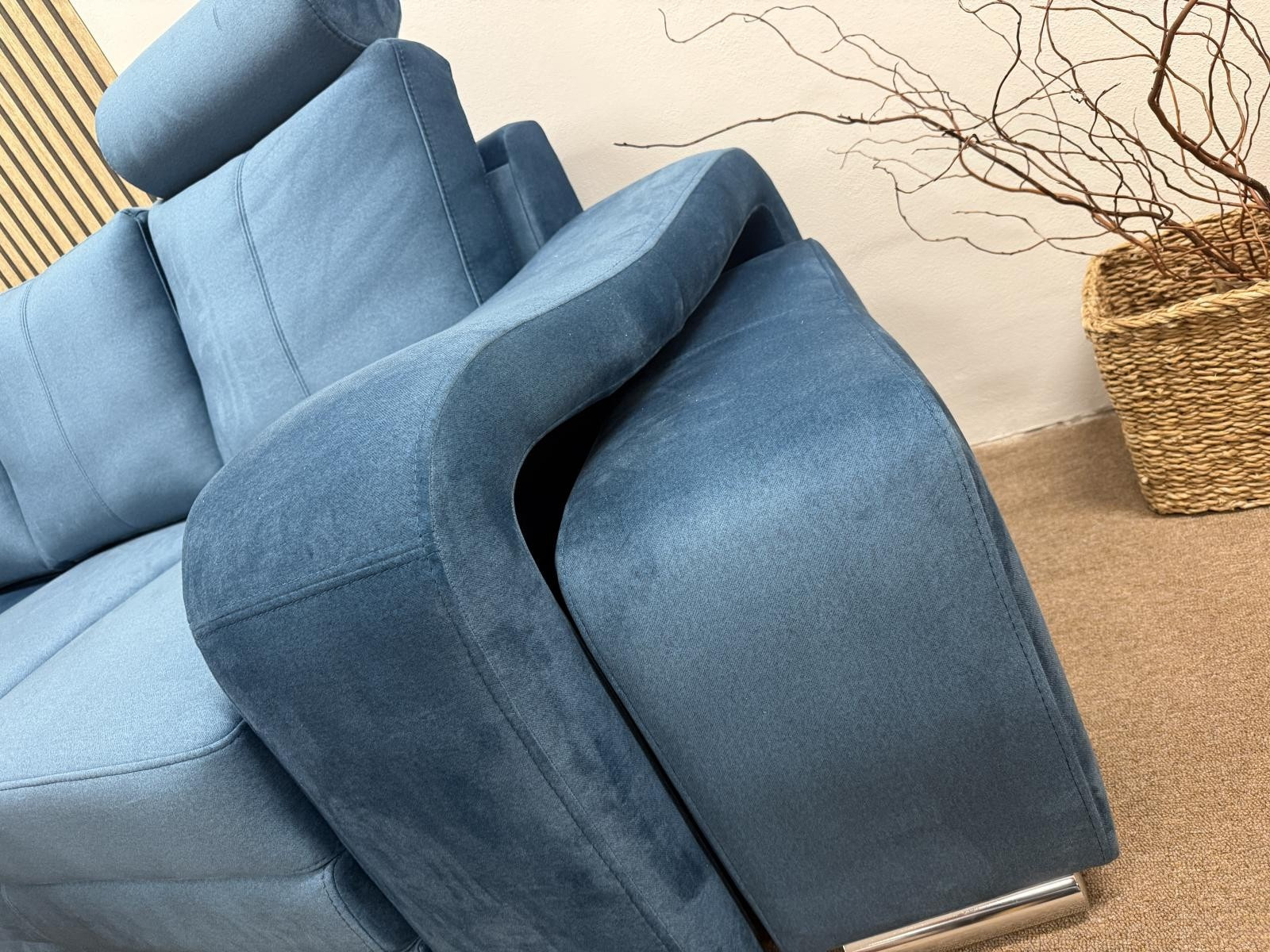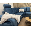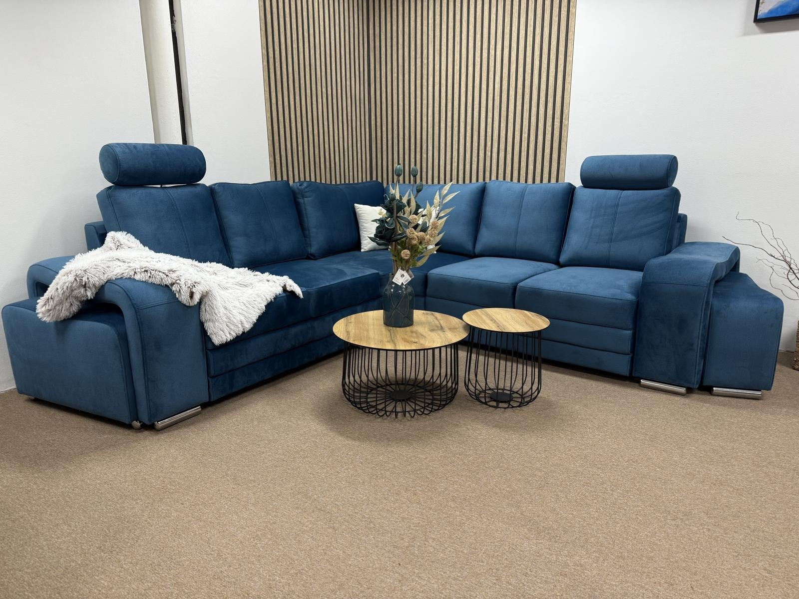 Luxusní rohová sedací souprava v potahové látce Element 21 modré barvy. Sedací souprava je bez rozkladu a úložného prostoru. Celá kostra sedací soupravy je vyrobena z dubového masivu, který zaručuje její dlouhou životnost. Vyplněna je bonellovými pružinami a vysoce elastickou HR pěnou. Souprava je vybavena dvěma nastavitelnými opěrkami hlavy a dvěma taburetky, které jsou prakticky uloženy po stranách (viz fotografie) a lze je snadno vytáhnout pro návštěvy nebo jako podnožky. Polštáře jsou k sedací soupravě upevněny suchými zipy.