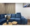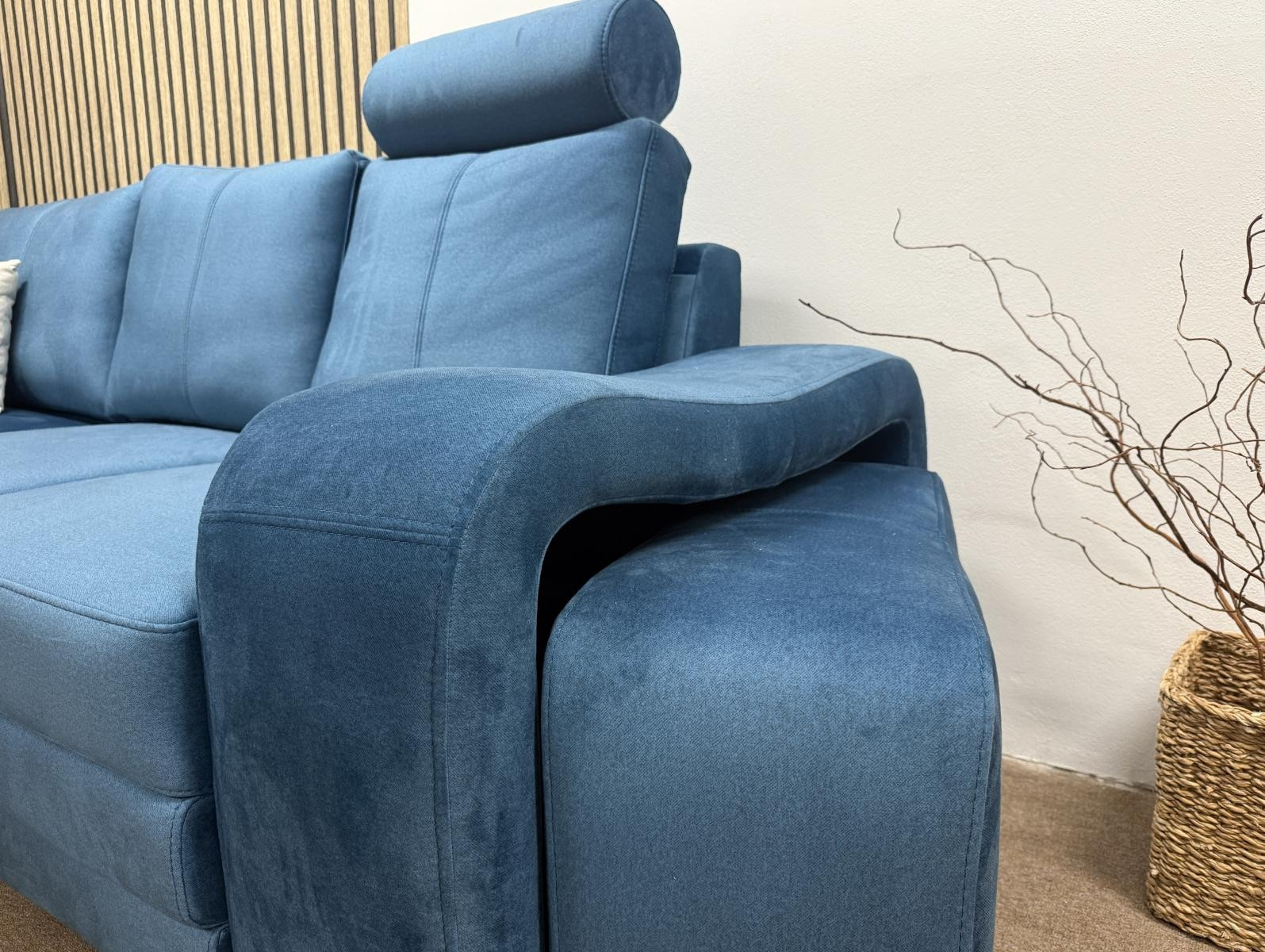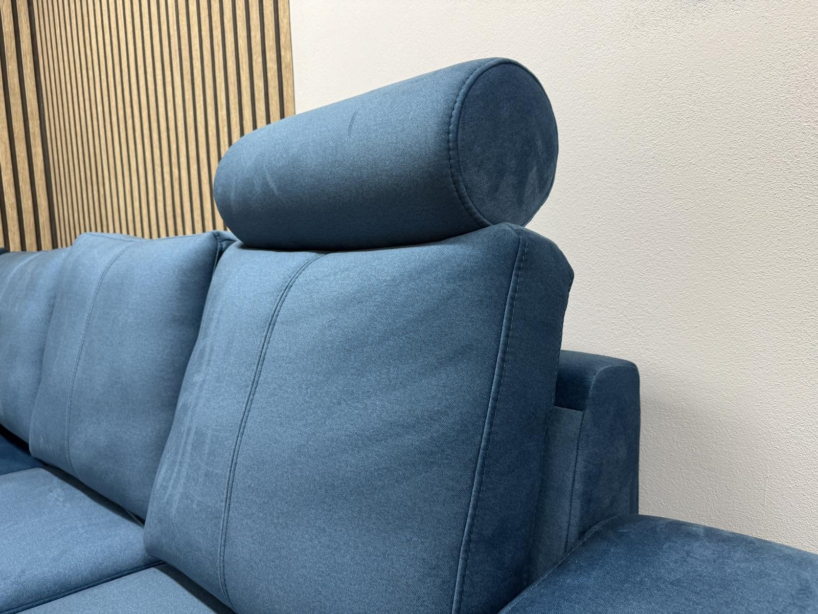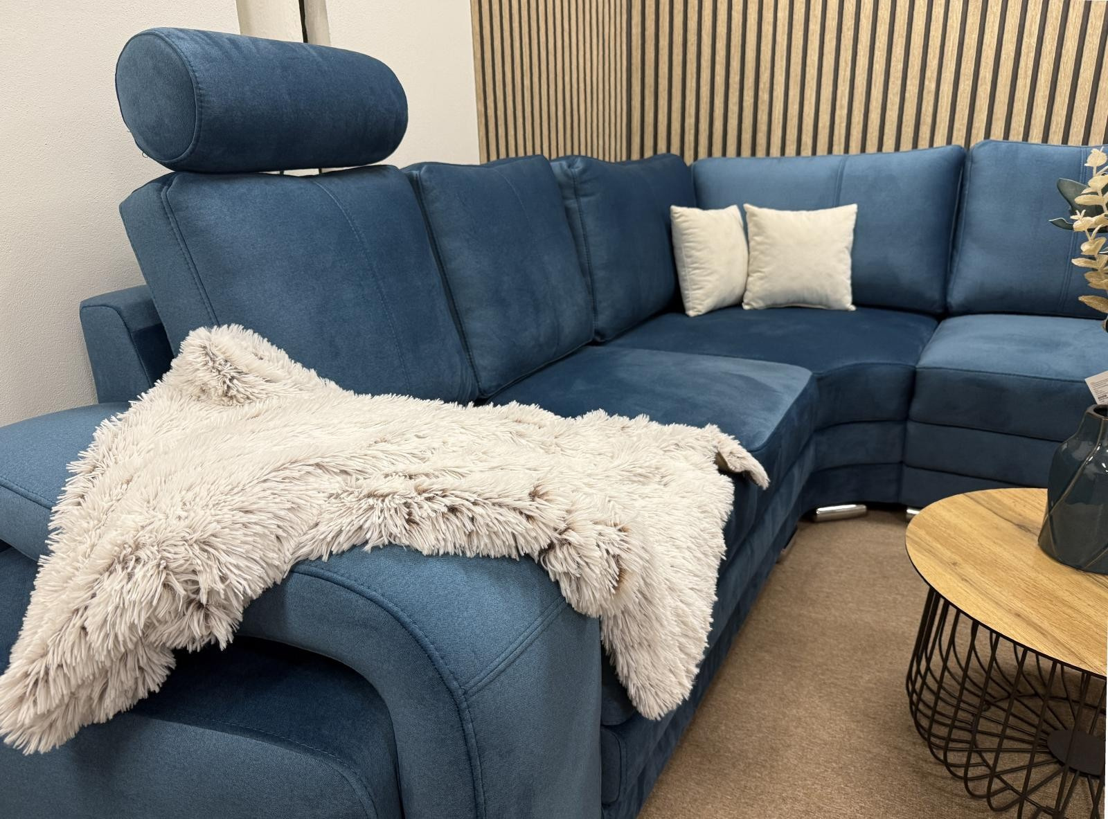 Luxusní rohová sedací souprava v potahové látce Element 21 modré barvy. Sedací souprava je bez rozkladu a úložného prostoru. Celá kostra sedací soupravy je vyrobena z dubového masivu, který zaručuje její dlouhou životnost. Vyplněna je bonellovými pružinami a vysoce elastickou HR pěnou. Souprava je vybavena dvěma nastavitelnými opěrkami hlavy a dvěma taburetky, které jsou prakticky uloženy po stranách (viz fotografie) a lze je snadno vytáhnout pro návštěvy nebo jako podnožky. Polštáře jsou k sedací soupravě upevněny suchými zipy.