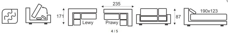 Rozměry(š.,hl.): 235 x 171, v. 87 cm (rozměr lehací plochy po rozložení: 190x123 cm)