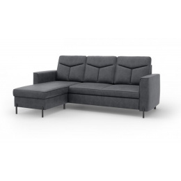 Rohová sedací souprava s funkcí spaní a skříňkou na lůžkoviny, vyrobená z vlnité pružiny.