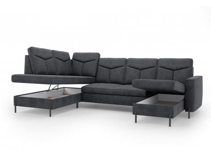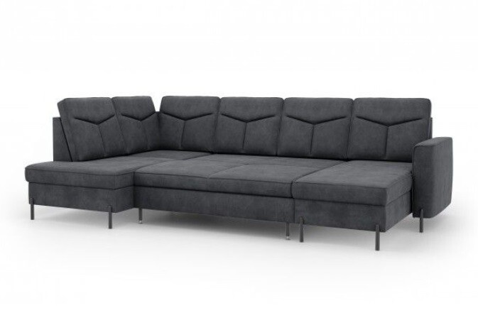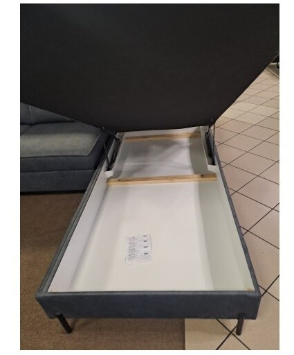 Rohová pohovka s funkcí spaní a kontejnerem na lůžkoviny, vyrobená na vlnité pružině.