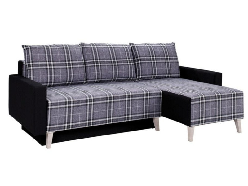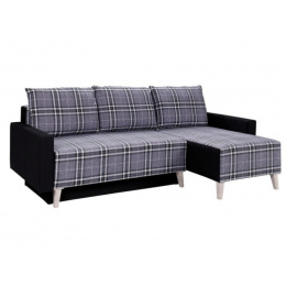 Moderní rozkládací rohová sedací souprava s úložným prostorem. Sedací část tvoří vlnité pužiny v kombinaci s molitanem.