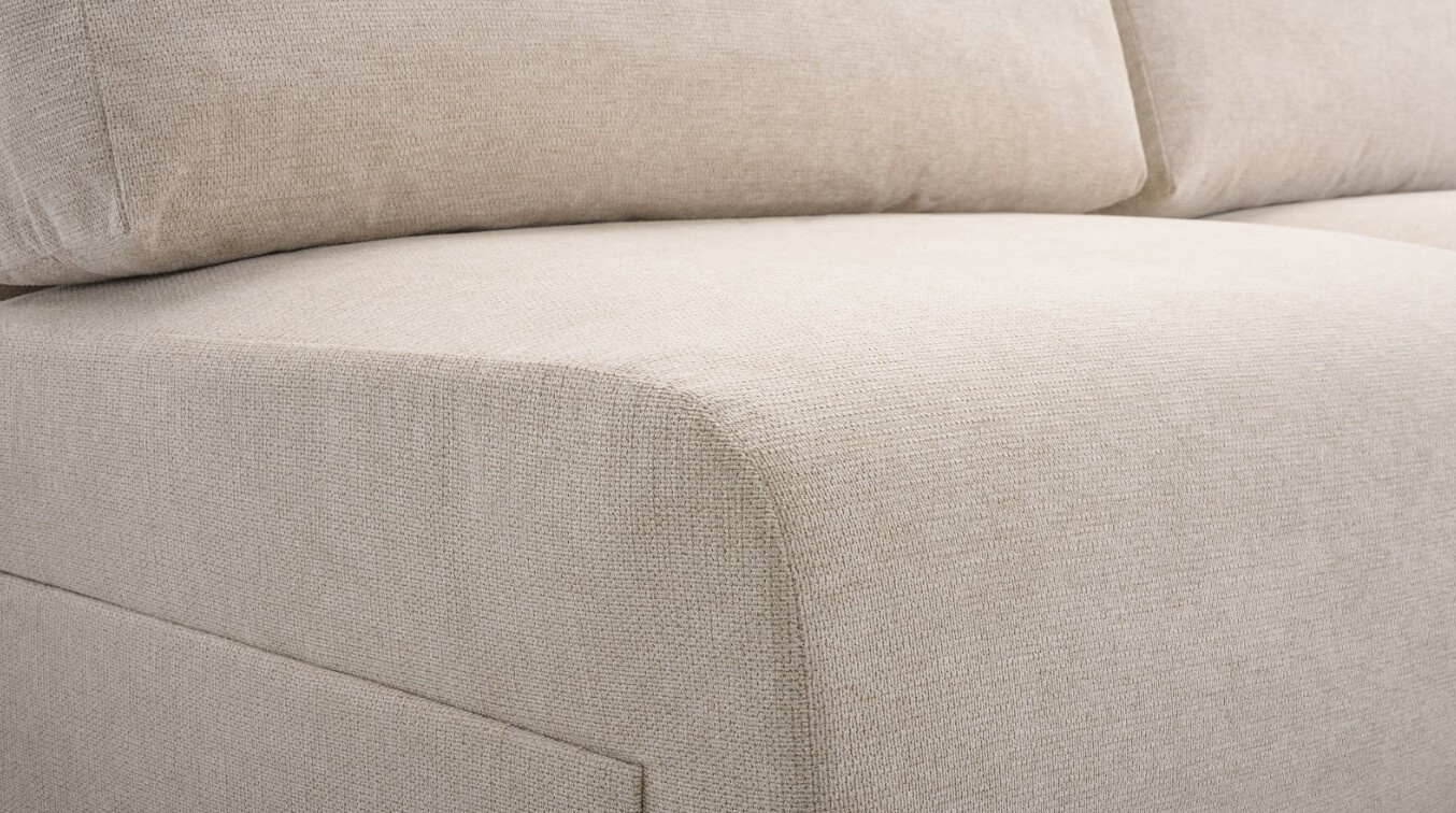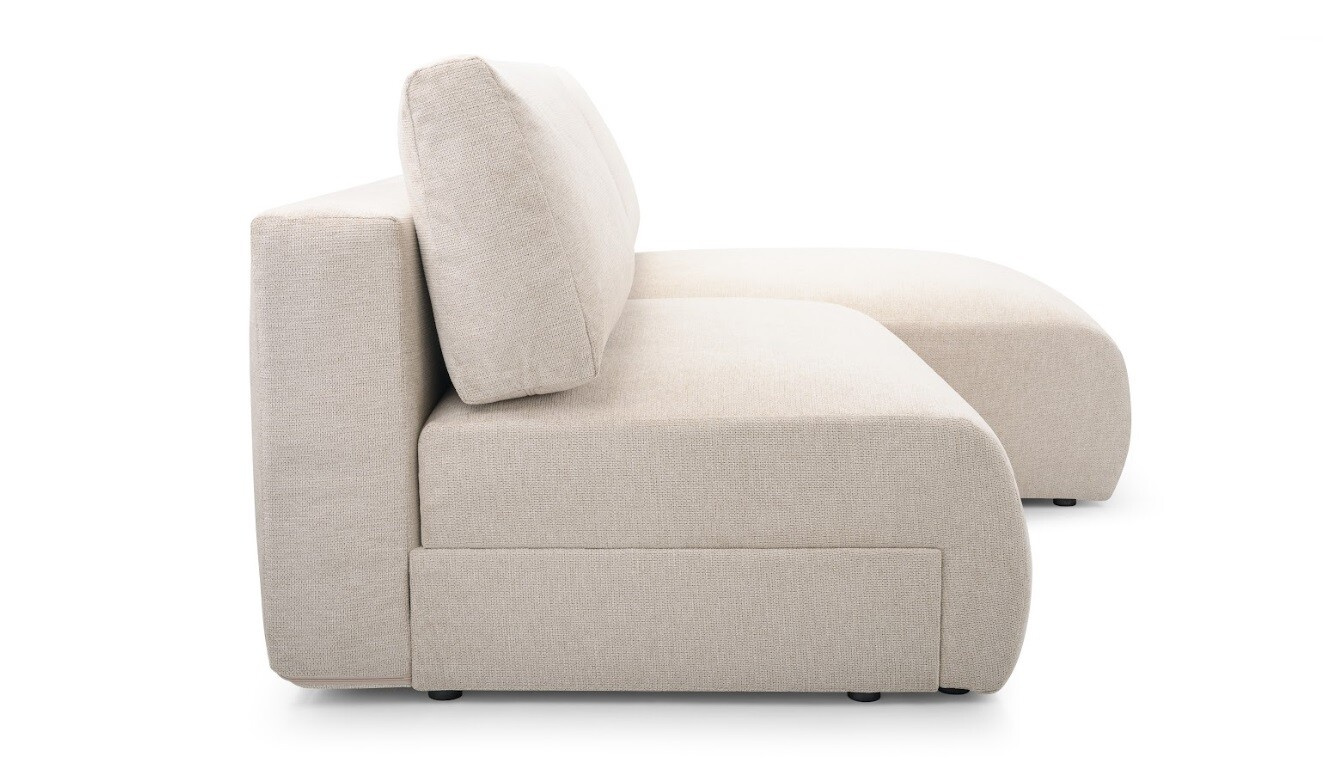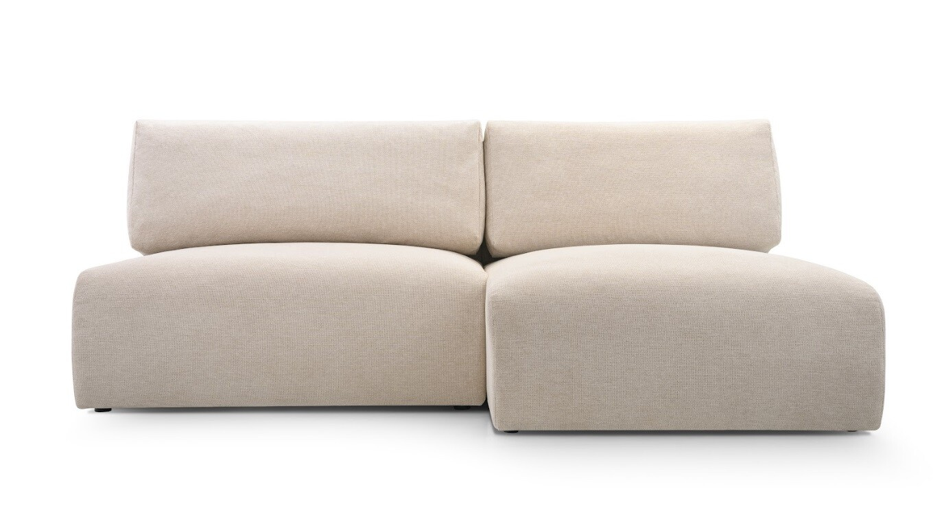 Moderní, kompaktní rohová sedačka oblých tvarů
