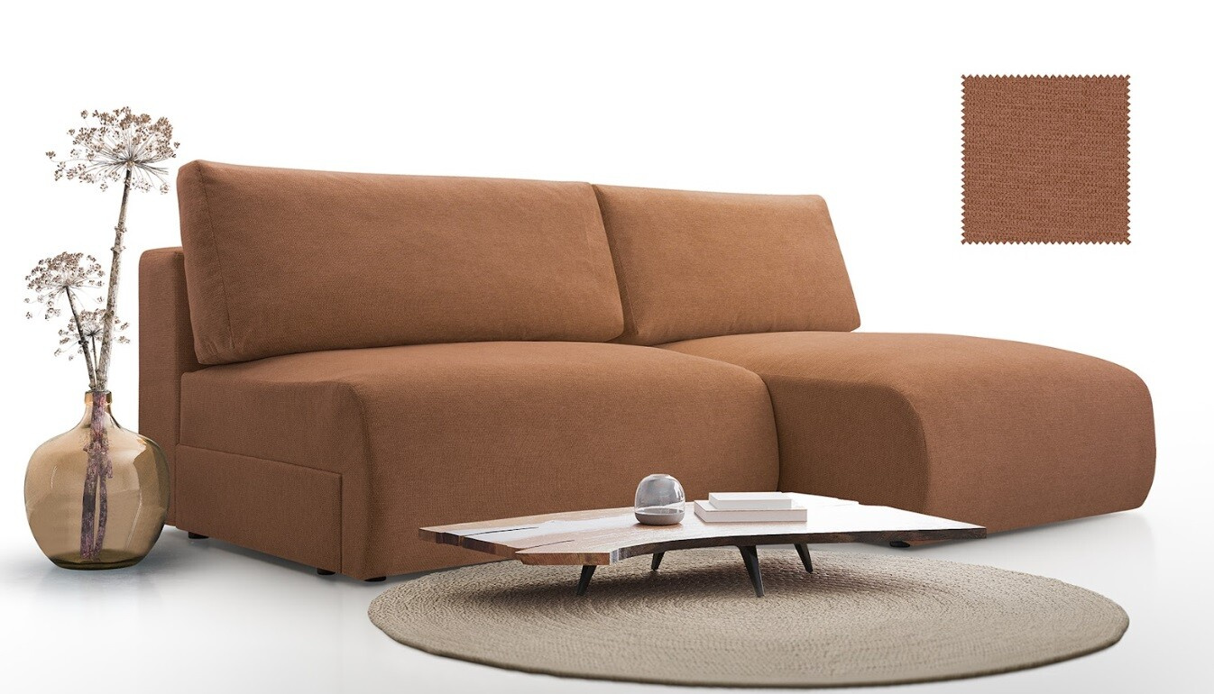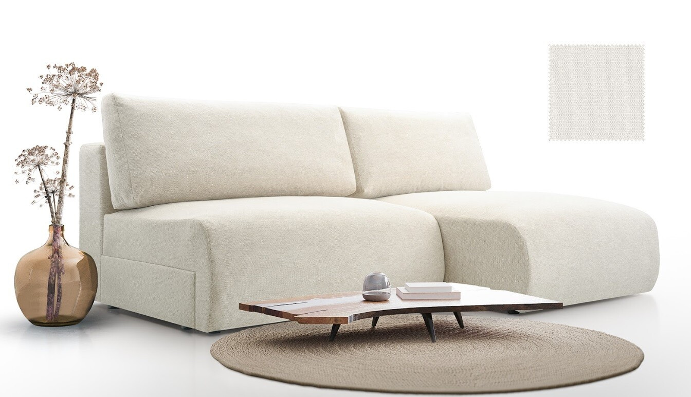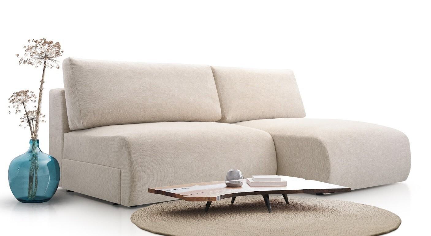 Moderní, kompaktní rohová sedačka oblých tvarů