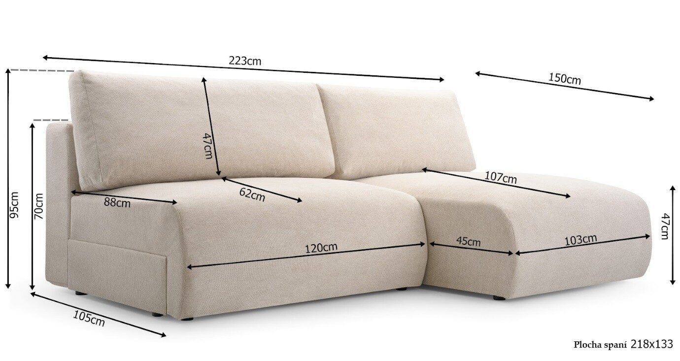 | Plocha na spaní | 218 x 133 cm |