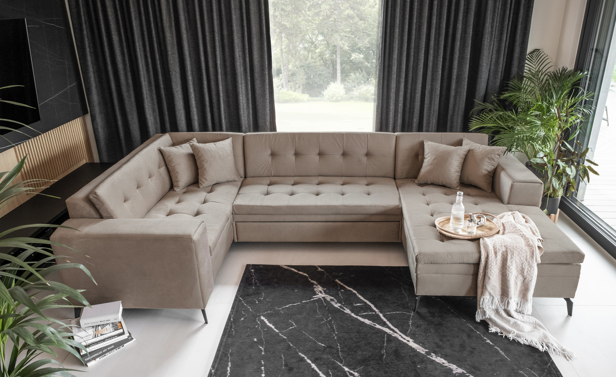 - možnost ustavení sedací soupravy do prostoru - záda sedací soupravy jsou očalouněny stejnou potahovou látkou
