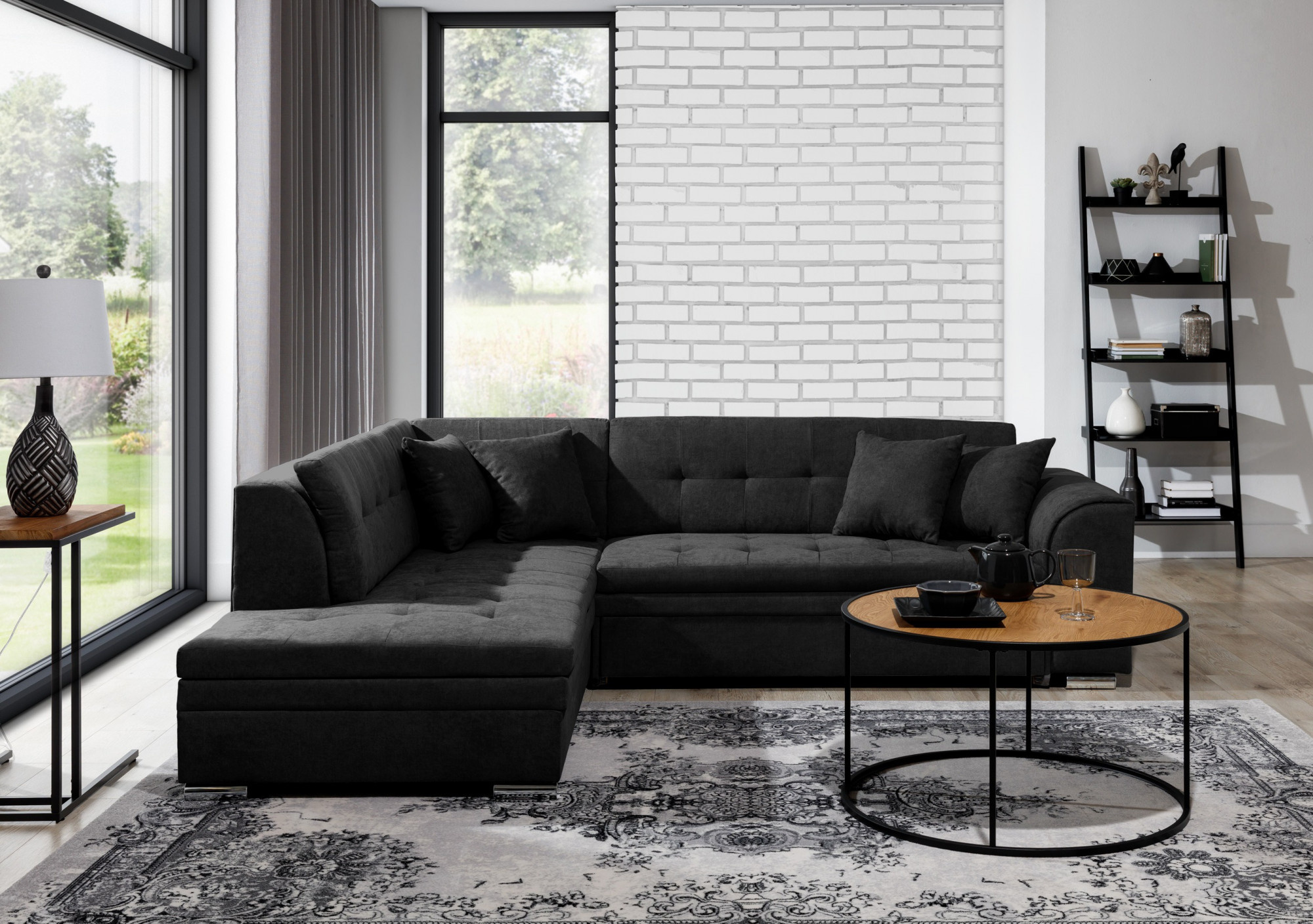 - možnost ustavení sedací soupravy do prostoru - záda sedací soupravy jsou očalouněny stejnou potahovou látkou