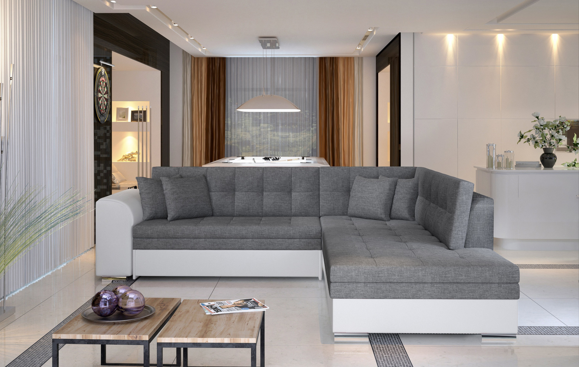 - možnost ustavení sedací soupravy do prostoru - záda sedací soupravy jsou očalouněny stejnou potahovou látkou