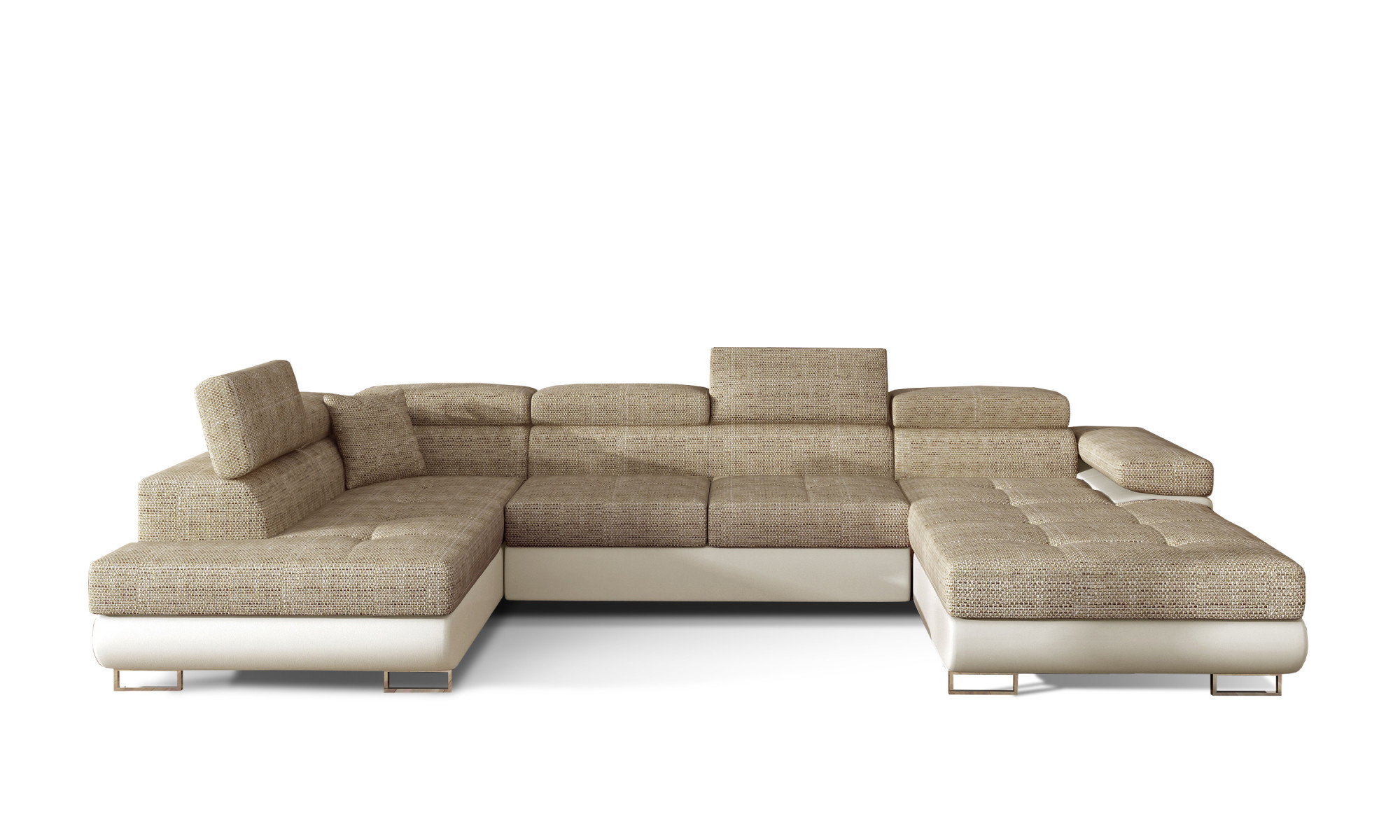 Rohová sedací souprava ve tvaru U RODRIGO je vyrobena z kvalitních materiálů. Konstrukce sedací soupravy je vyrobena z kombinace dřeva a dřevotřísky. Sedací část je vyrobena v kombinaci polyuretanové pěny T3040 s vlnitými pružinami. Na opěru sedací soupravy je použita polyuretanová pěna T2542. Sedací souprava je rozkládací pomocí rozkladu typu Delfín. Sedací souprava má prostorný úložný prostor pro úschovu lůžkovin.