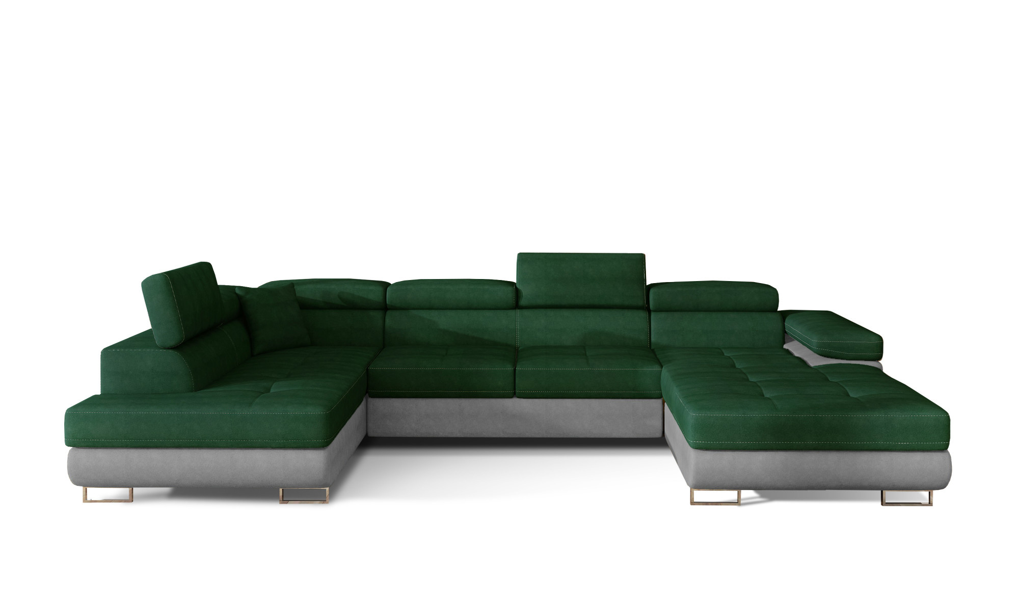 Rohová sedací souprava ve tvaru U RODRIGO je vyrobena z kvalitních materiálů. Konstrukce sedací soupravy je vyrobena z kombinace dřeva a dřevotřísky. Sedací část je vyrobena v kombinaci polyuretanové pěny T3040 s vlnitými pružinami. Na opěru sedací soupravy je použita polyuretanová pěna T2542. Sedací souprava je rozkládací pomocí rozkladu typu Delfín. Sedací souprava má prostorný úložný prostor pro úschovu lůžkovin.