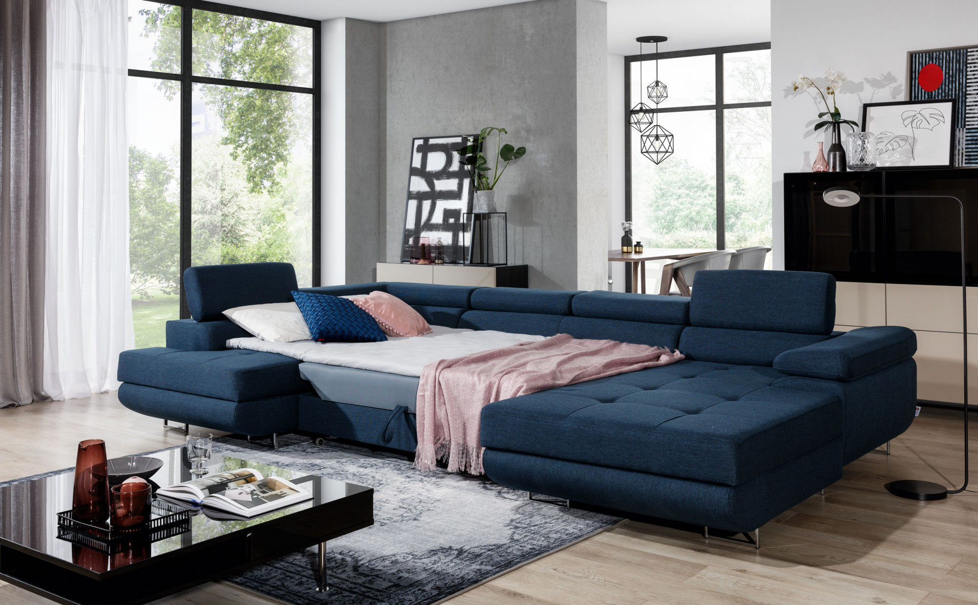 Sedací soupravu lze rozložit a vytvořit tak spací plochu o rozměrech 125x266 cm.