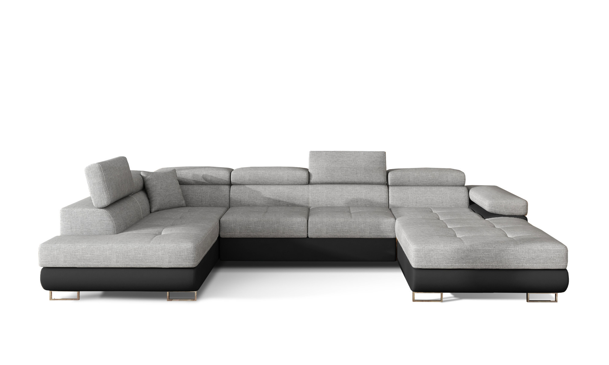 Rohová sedací souprava ve tvaru U RODRIGO je vyrobena z kvalitních materiálů. Konstrukce sedací soupravy je vyrobena z kombinace dřeva a dřevotřísky. Sedací část je vyrobena v kombinaci polyuretanové pěny T3040 s vlnitými pružinami. Na opěru sedací soupravy je použita polyuretanová pěna T2542. Sedací souprava je rozkládací pomocí rozkladu typu Delfín. Sedací souprava má prostorný úložný prostor pro úschovu lůžkovin.